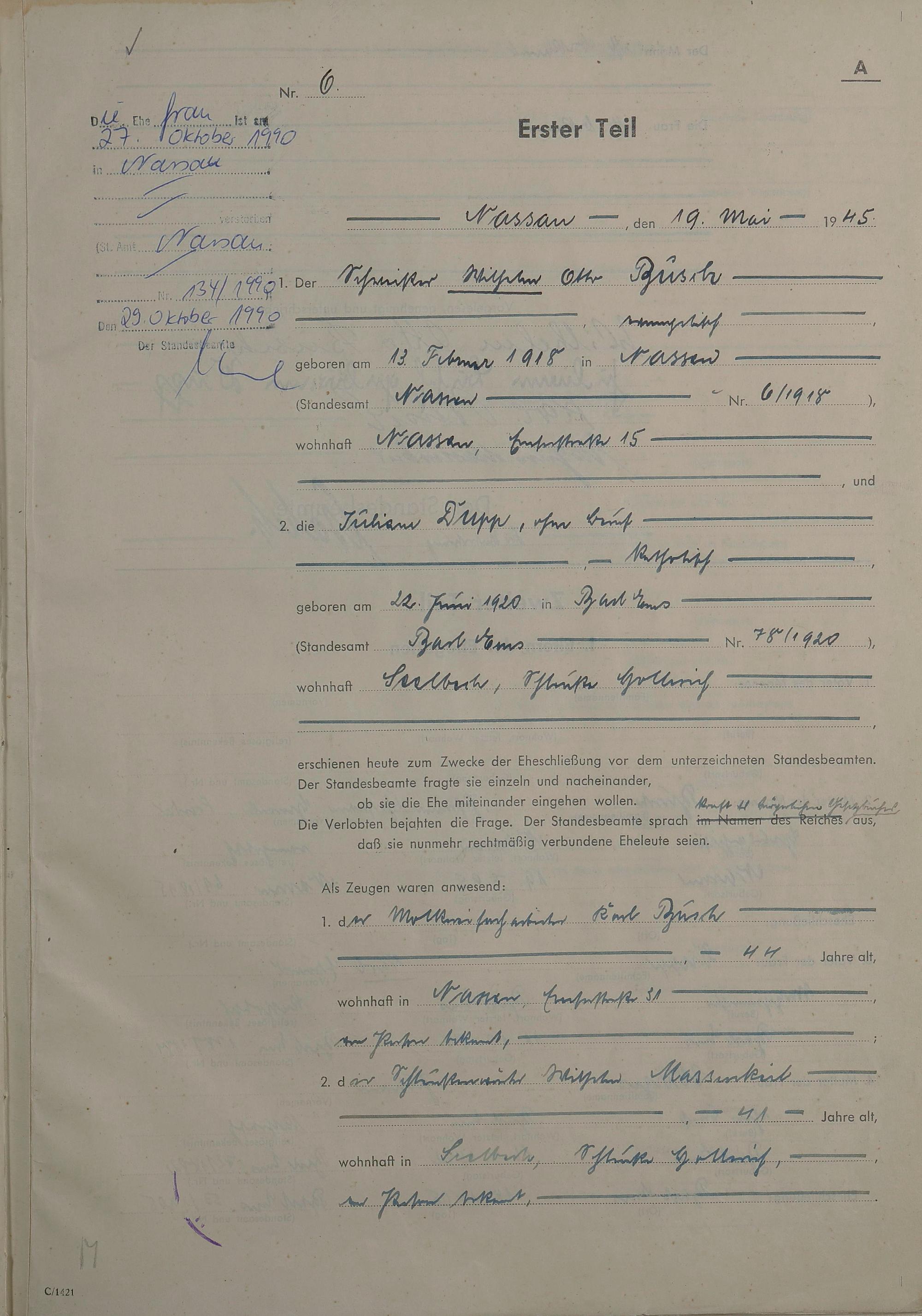 Heiratsregister 1945