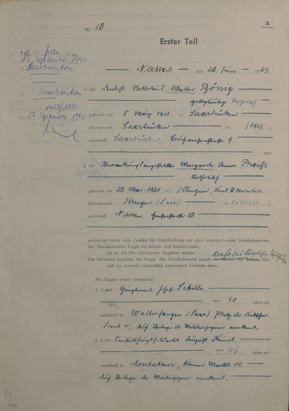 Heiratsregister 1945