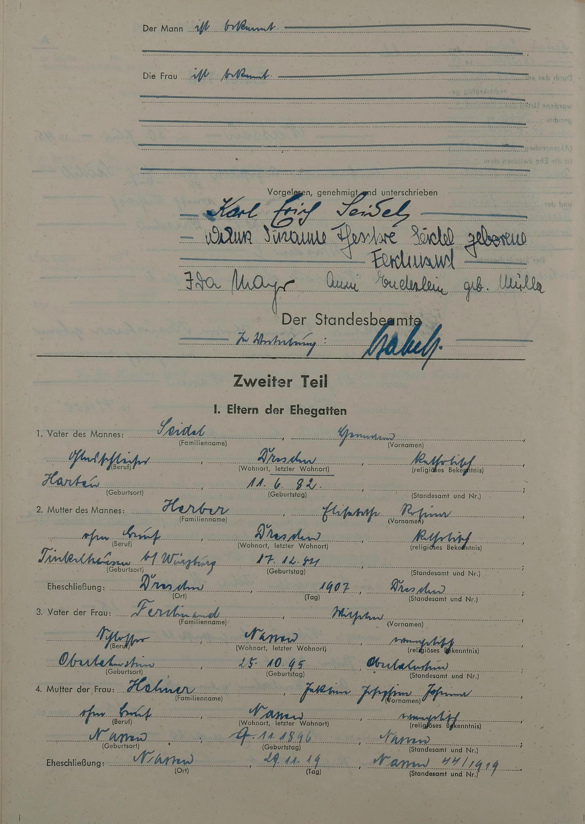 Heiratsregister 1945