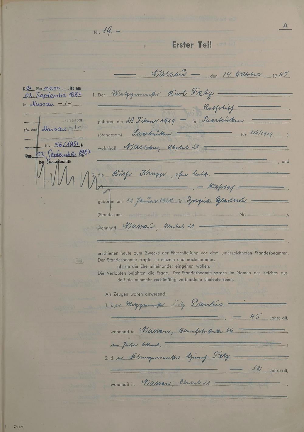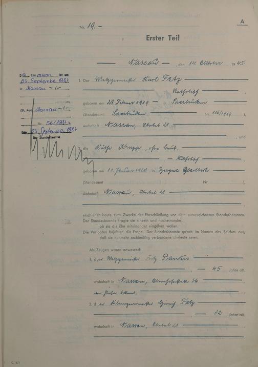 Heiratsregister 1945