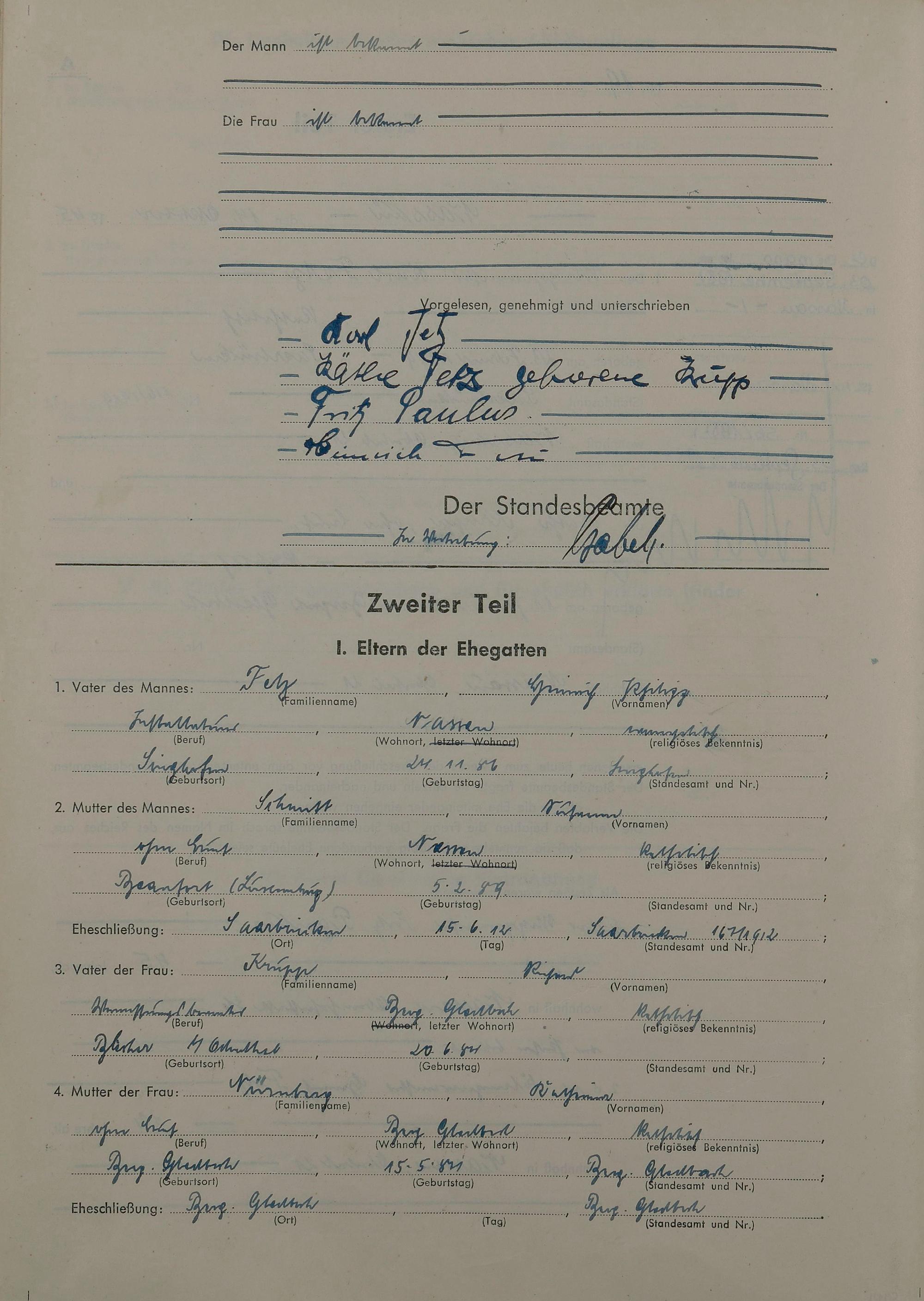 Heiratsregister 1945