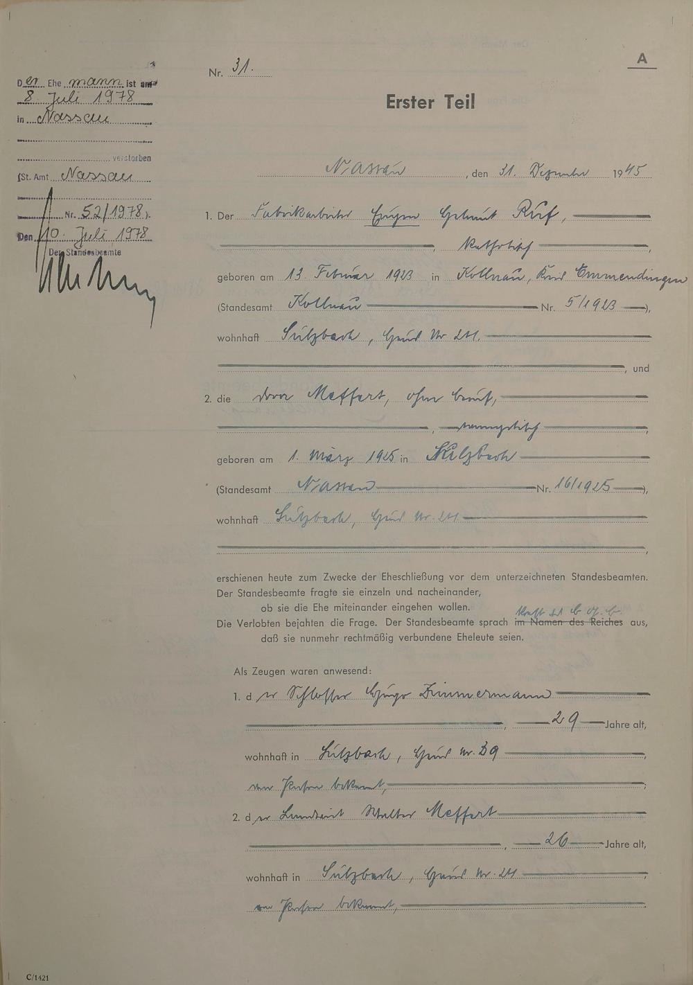 Heiratsregister 1945