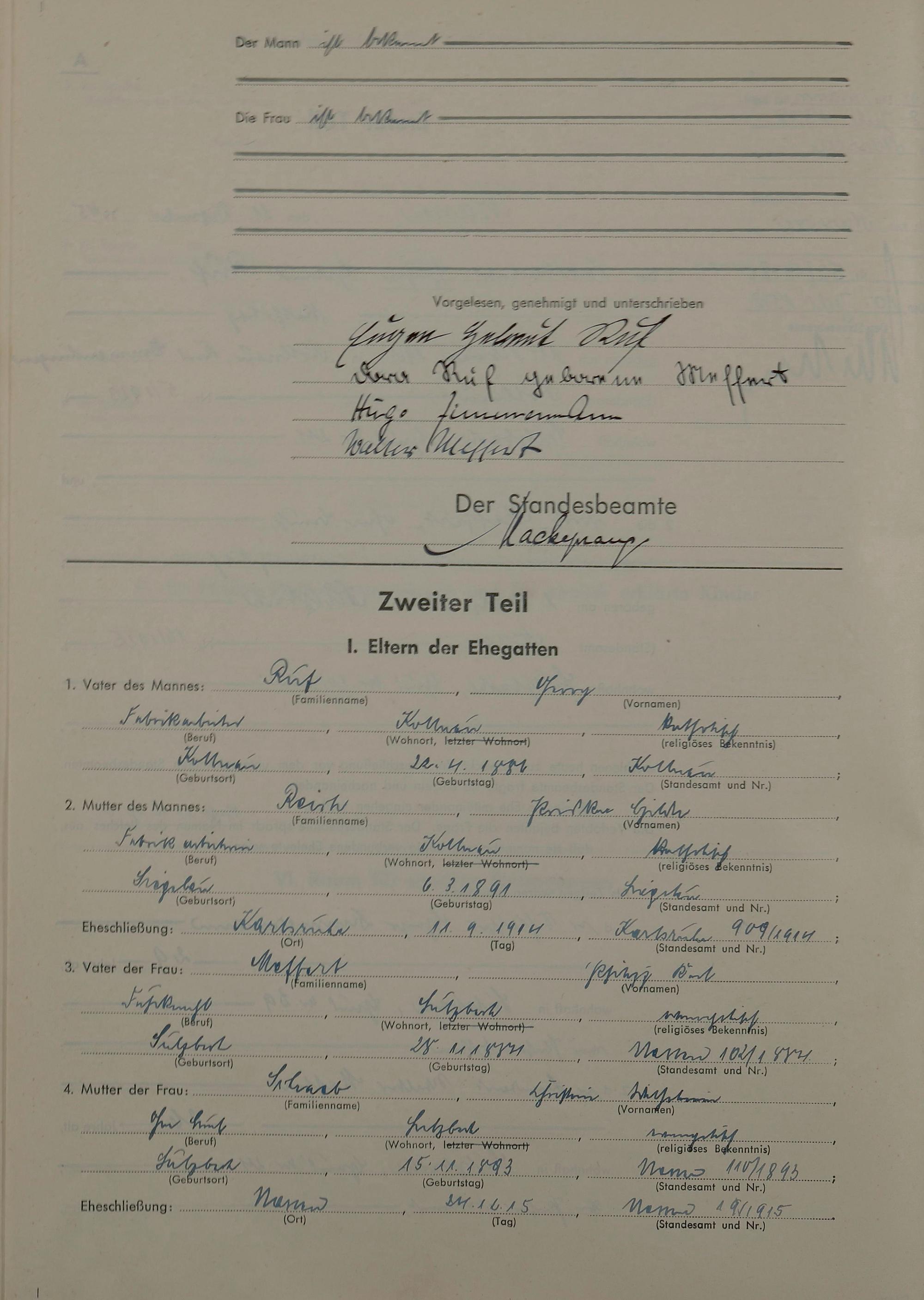 Heiratsregister 1945