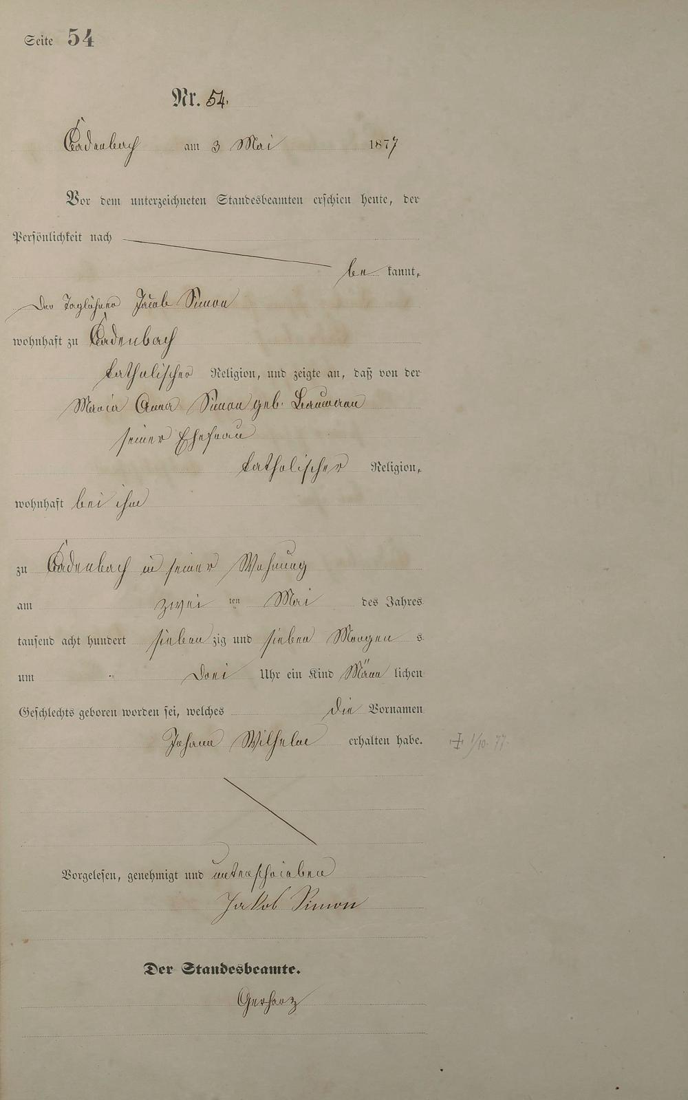 Geburtsregister 1877