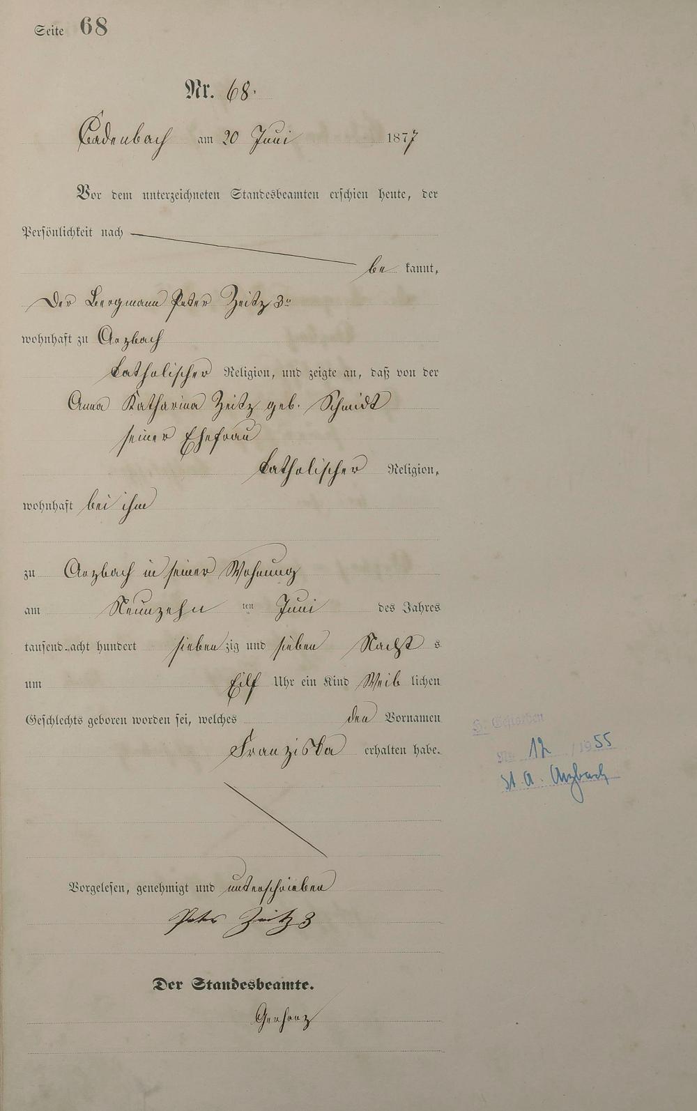 Geburtsregister 1877
