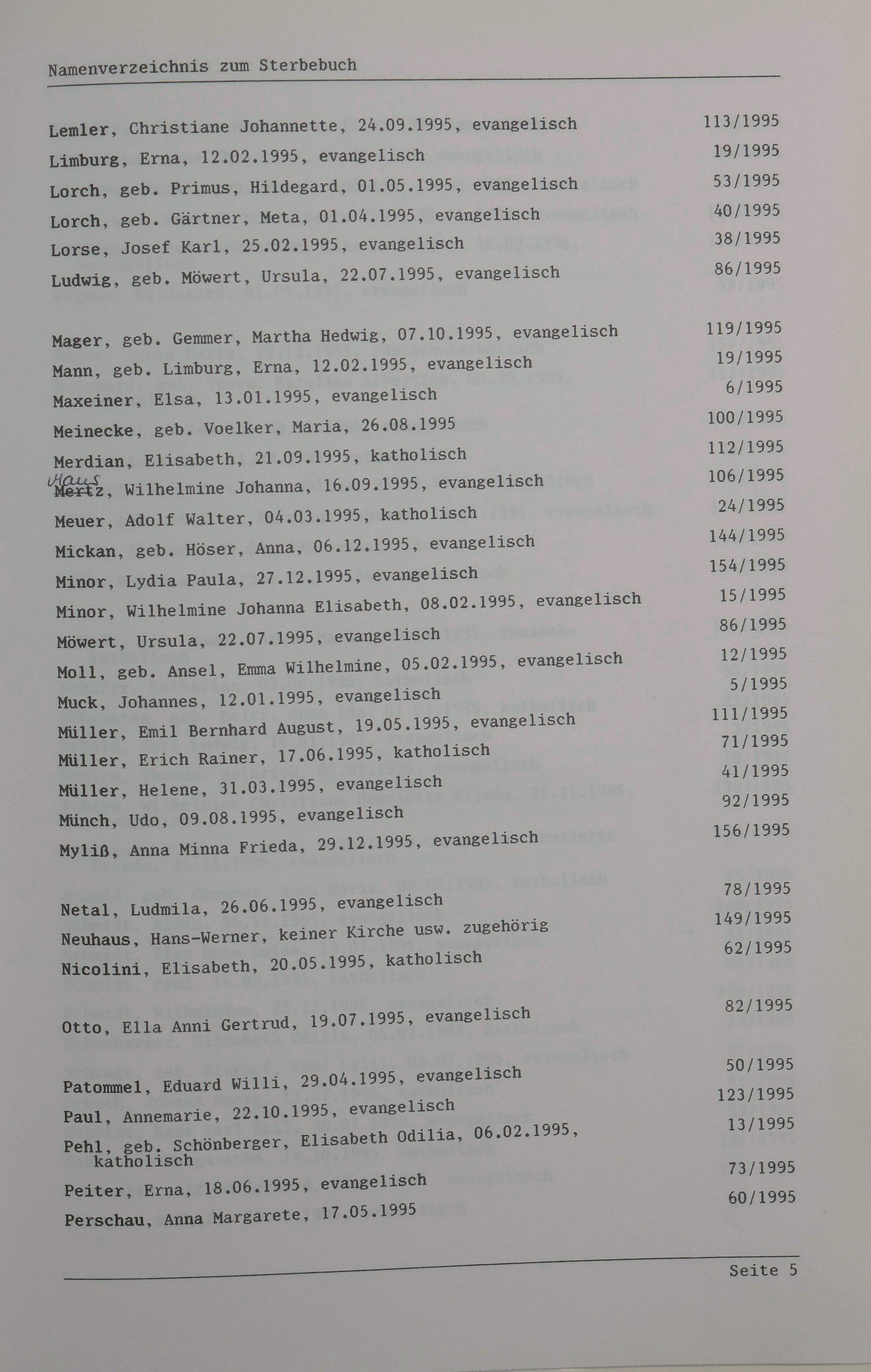 Sterberegister 1995