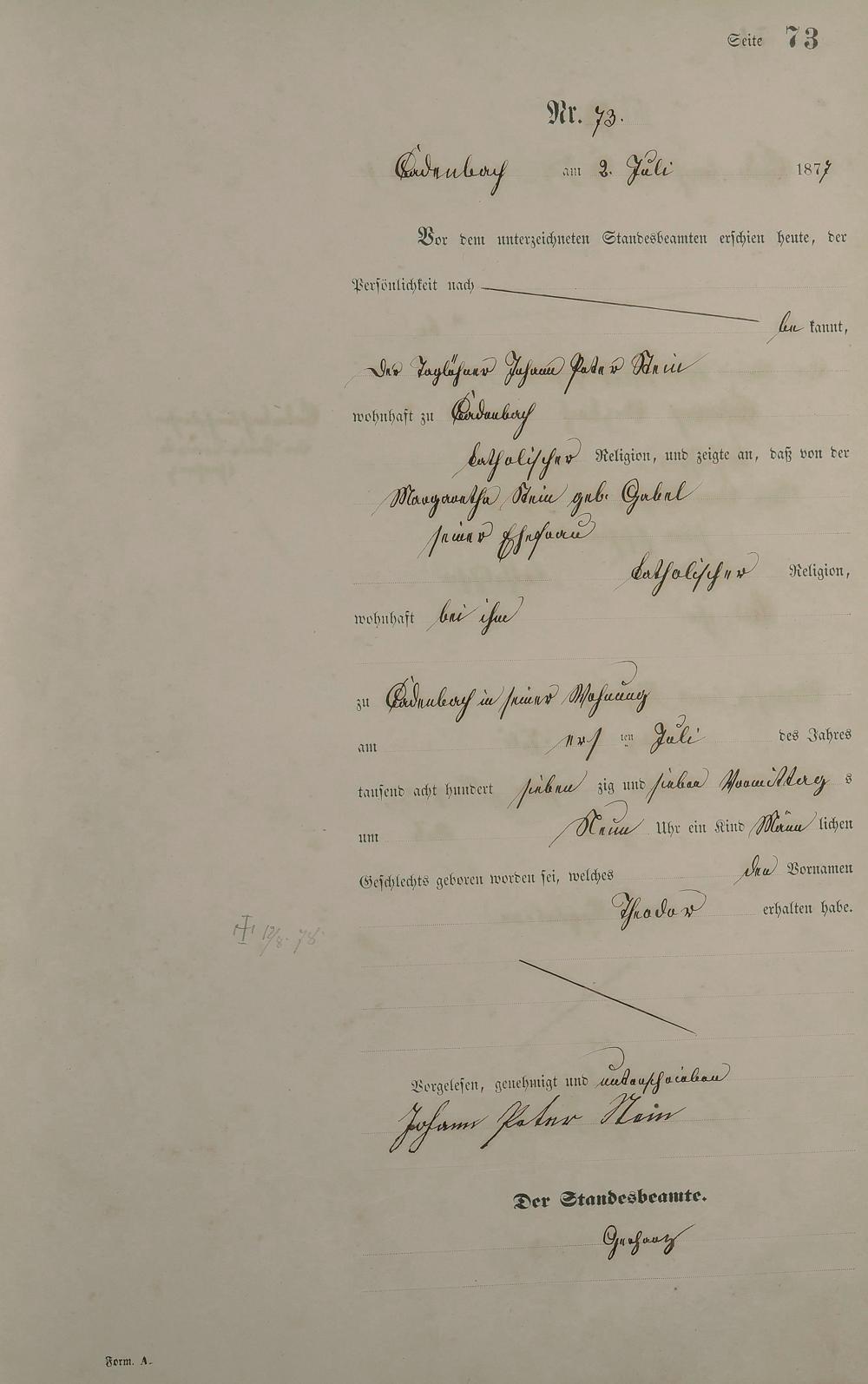 Geburtsregister 1877