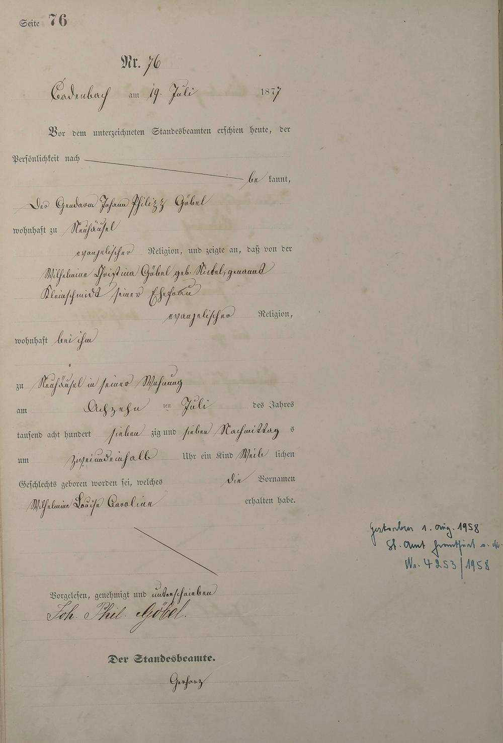 Geburtsregister 1877
