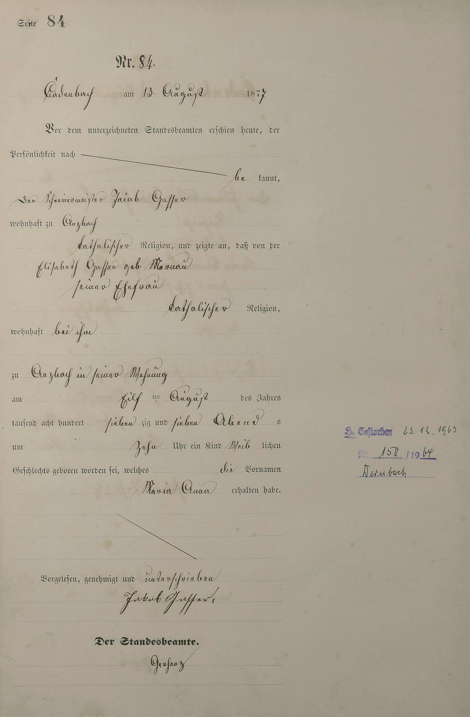 Geburtsregister 1877
