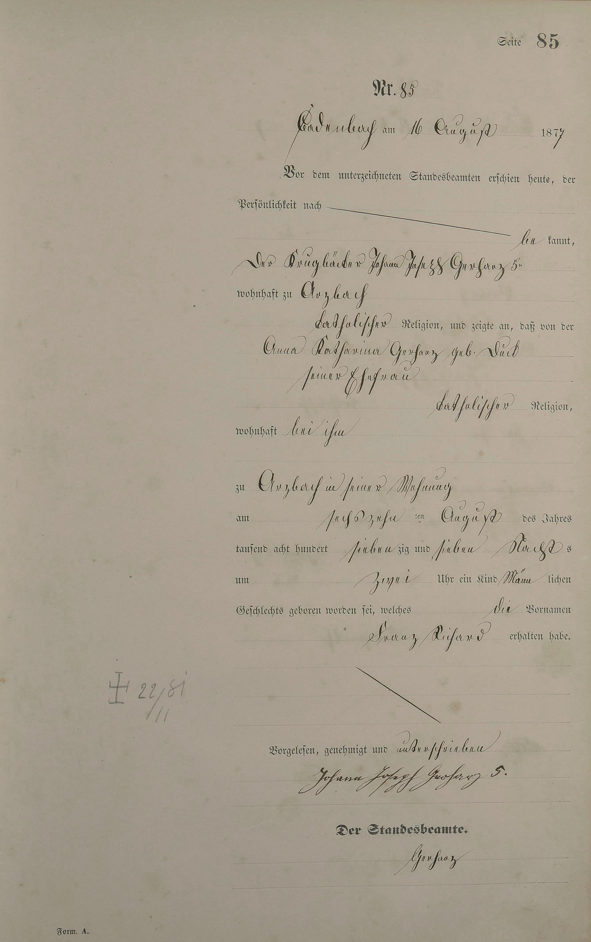Geburtsregister 1877