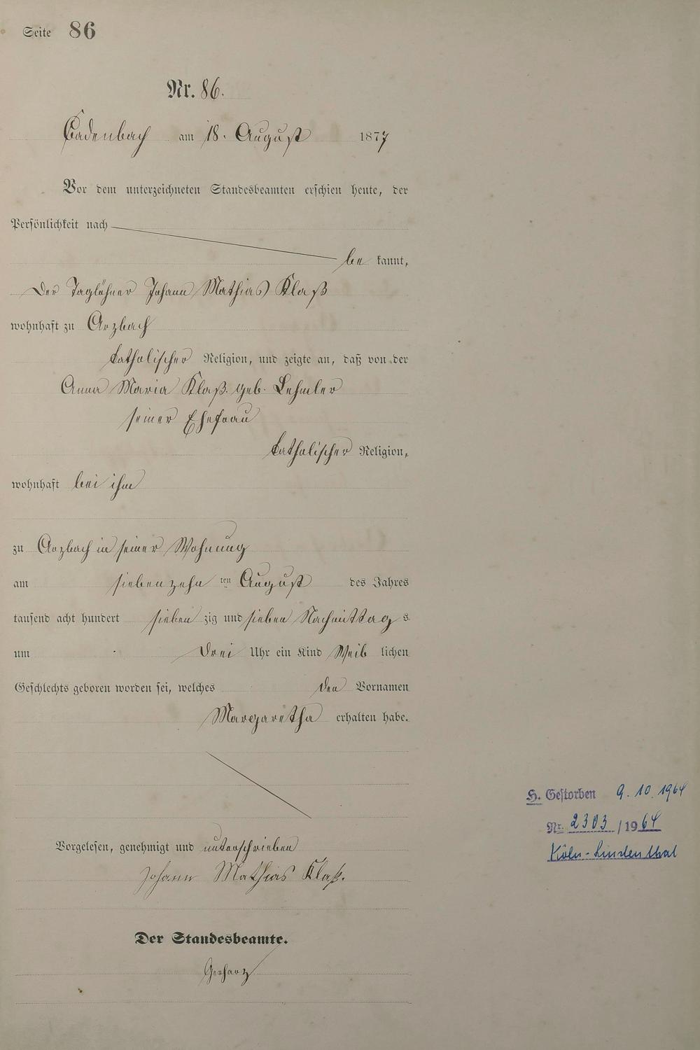 Geburtsregister 1877