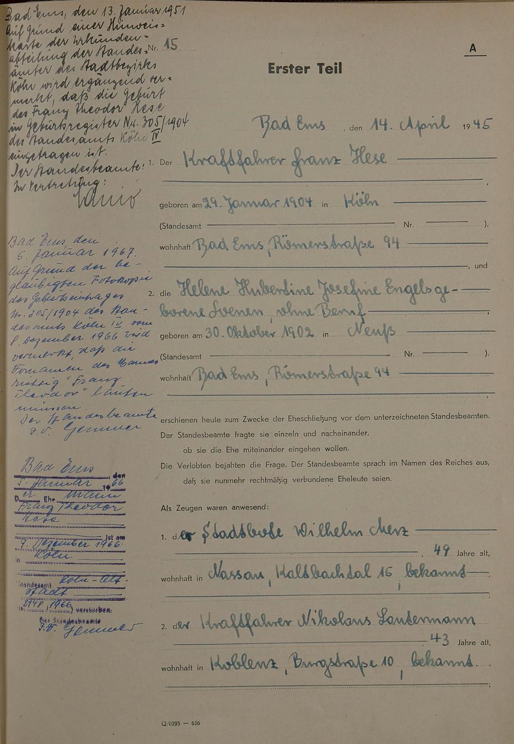 Heiratsregister 1945