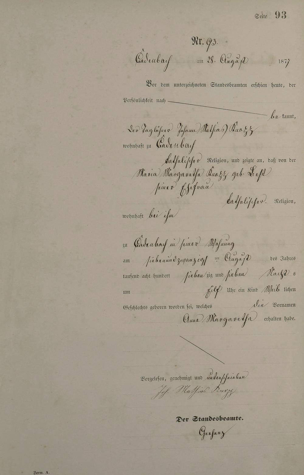 Geburtsregister 1877