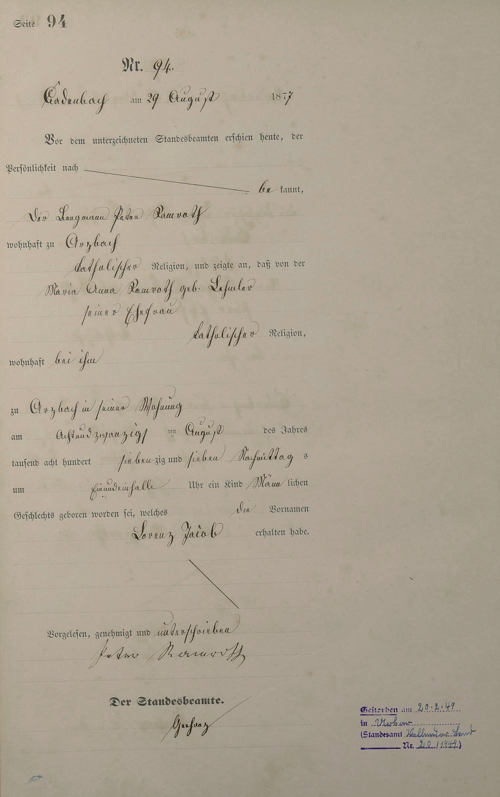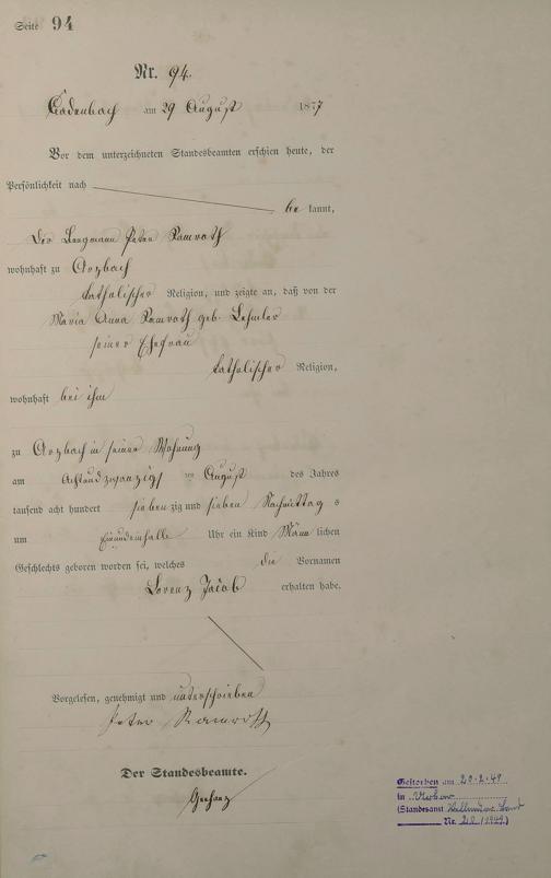 Geburtsregister 1877