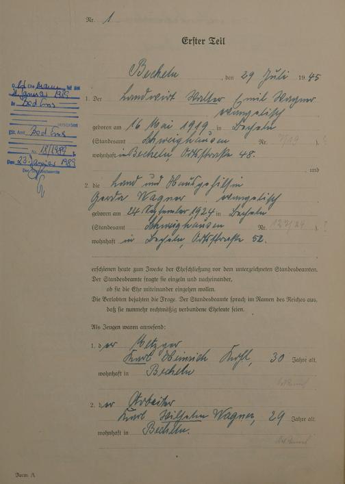 Heiratsregister 1945