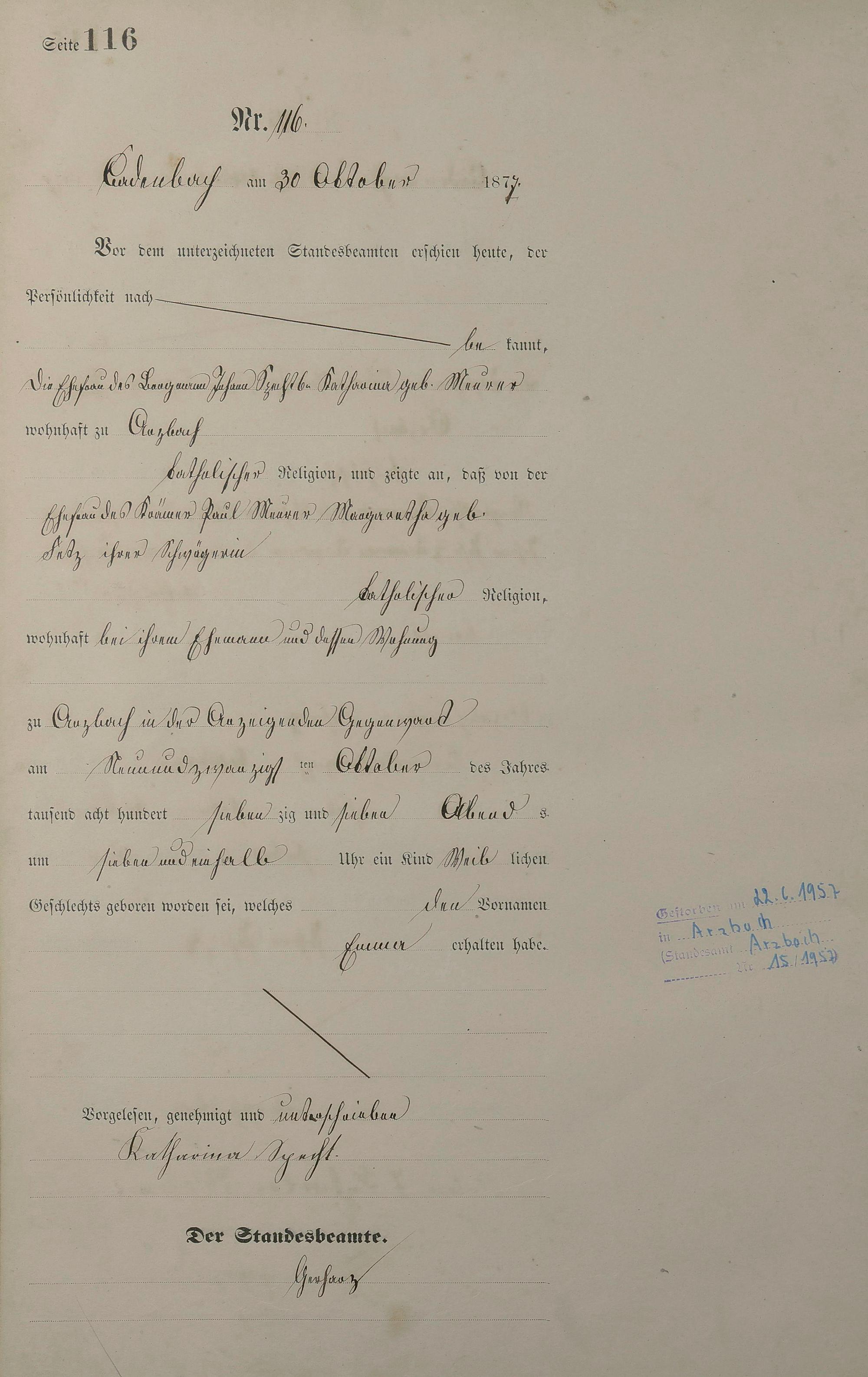 Geburtsregister 1877