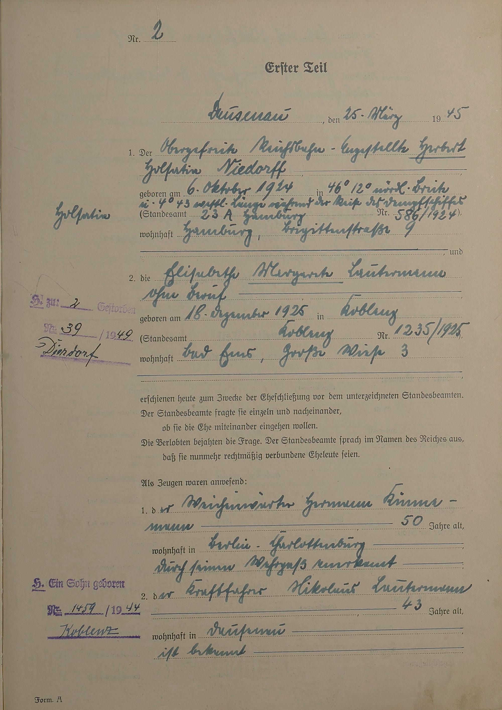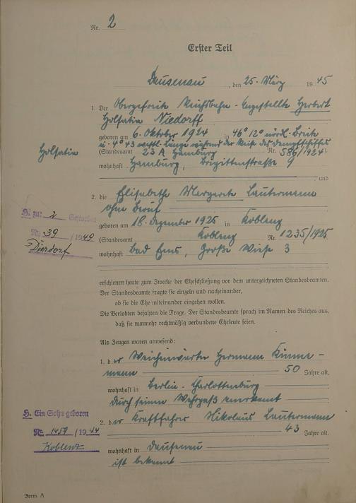 Heiratsregister 1945