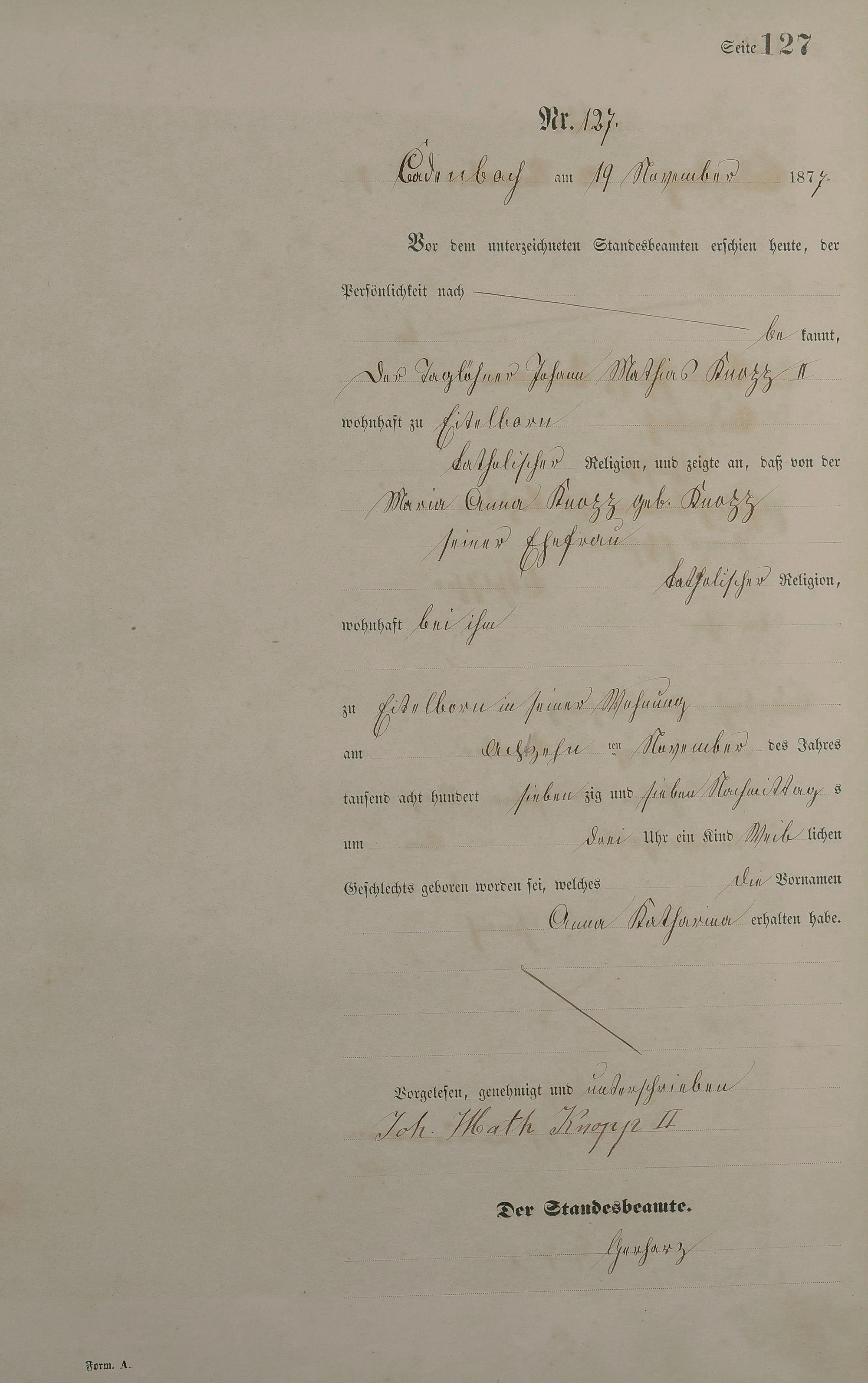 Geburtsregister 1877