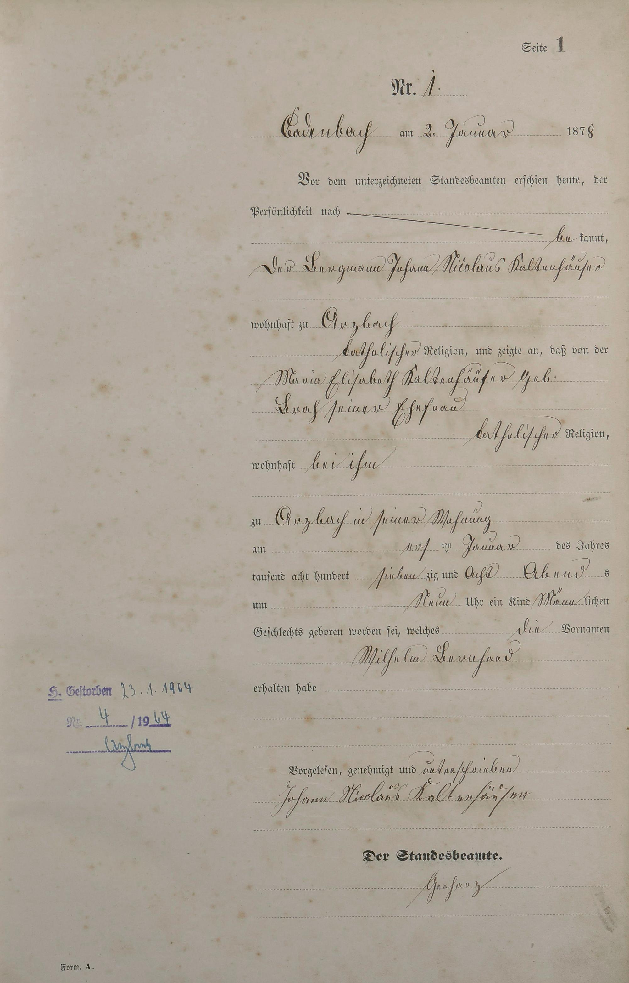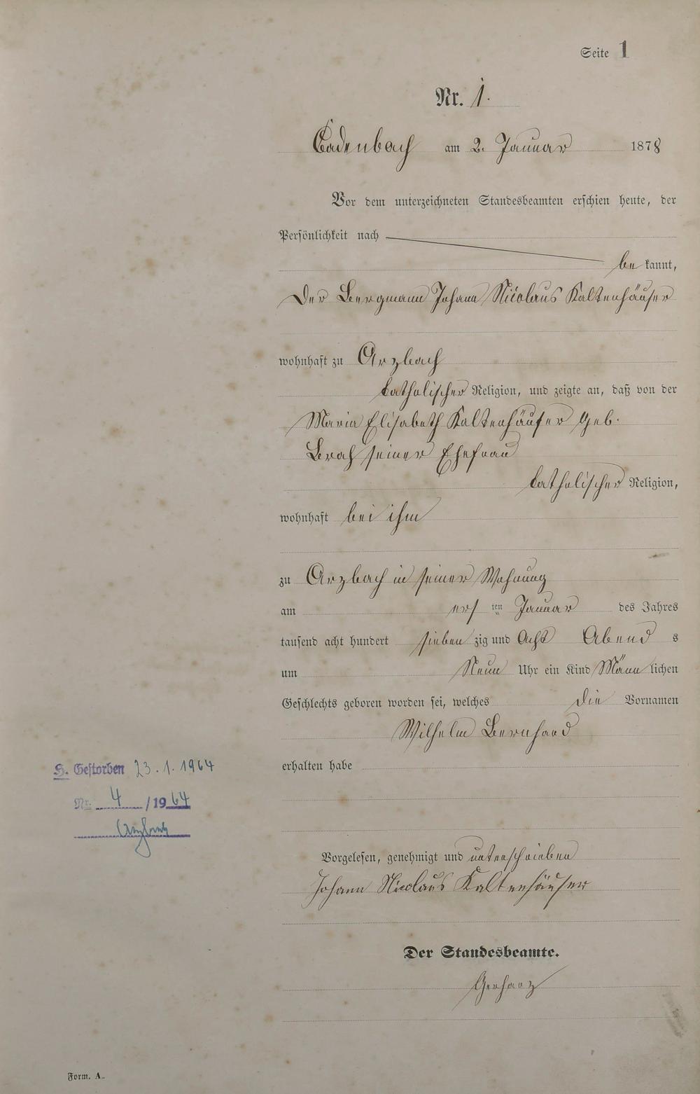 Geburtsregister 1878