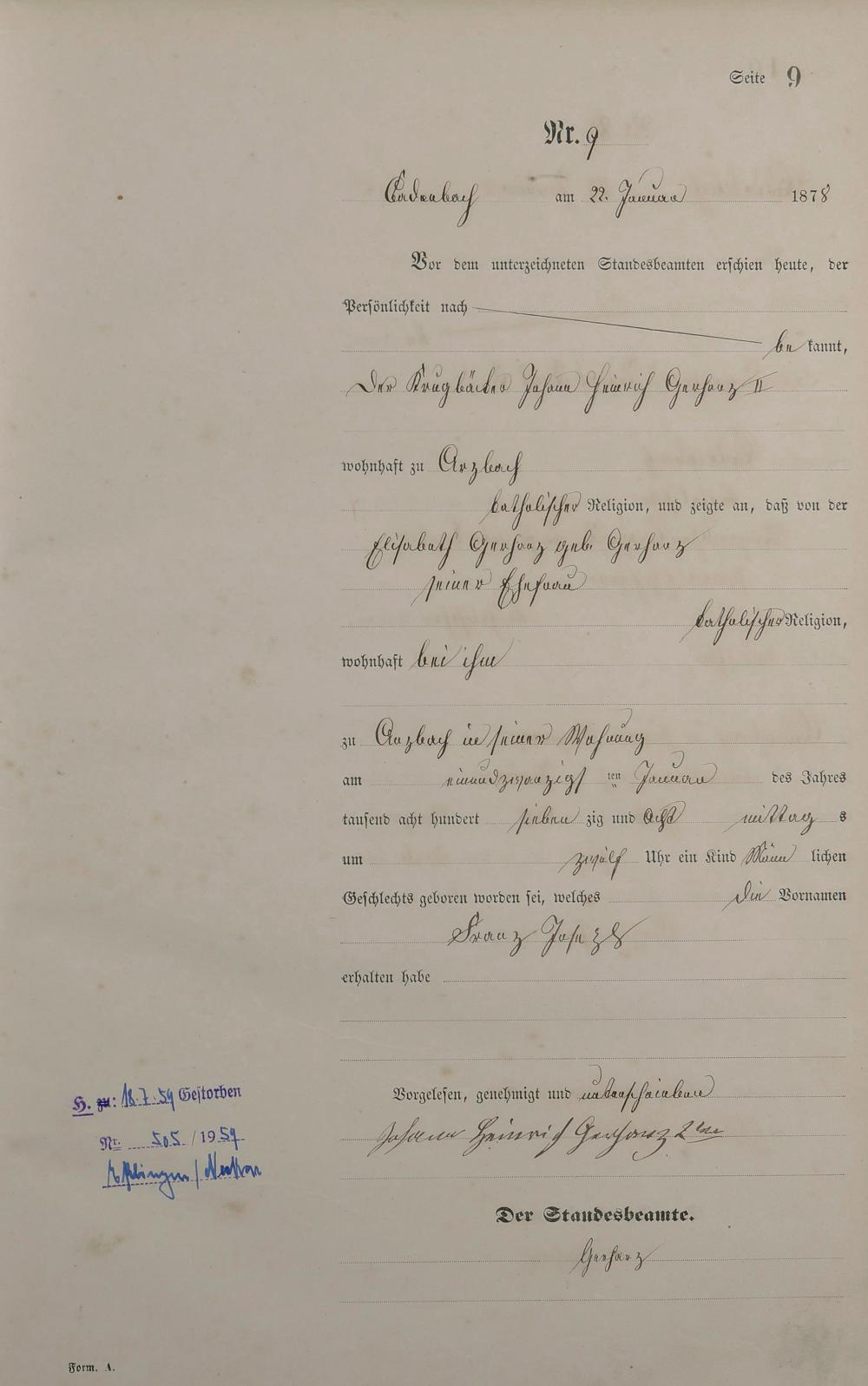 Geburtsregister 1878