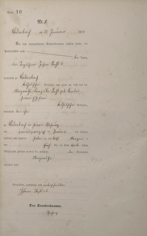 Geburtsregister 1878