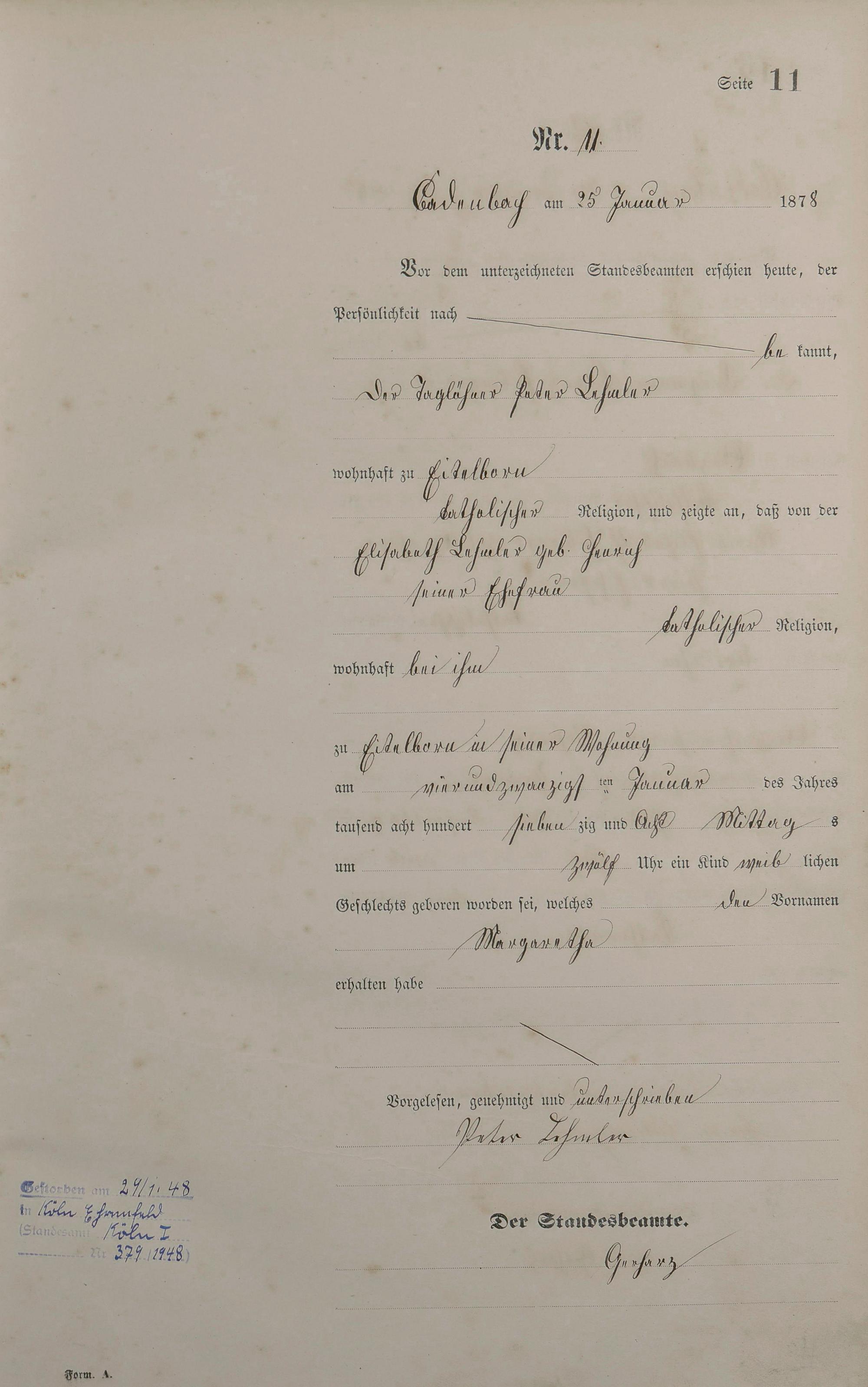 Geburtsregister 1878