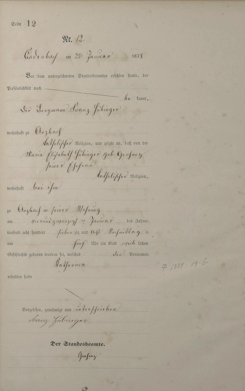 Geburtsregister 1878