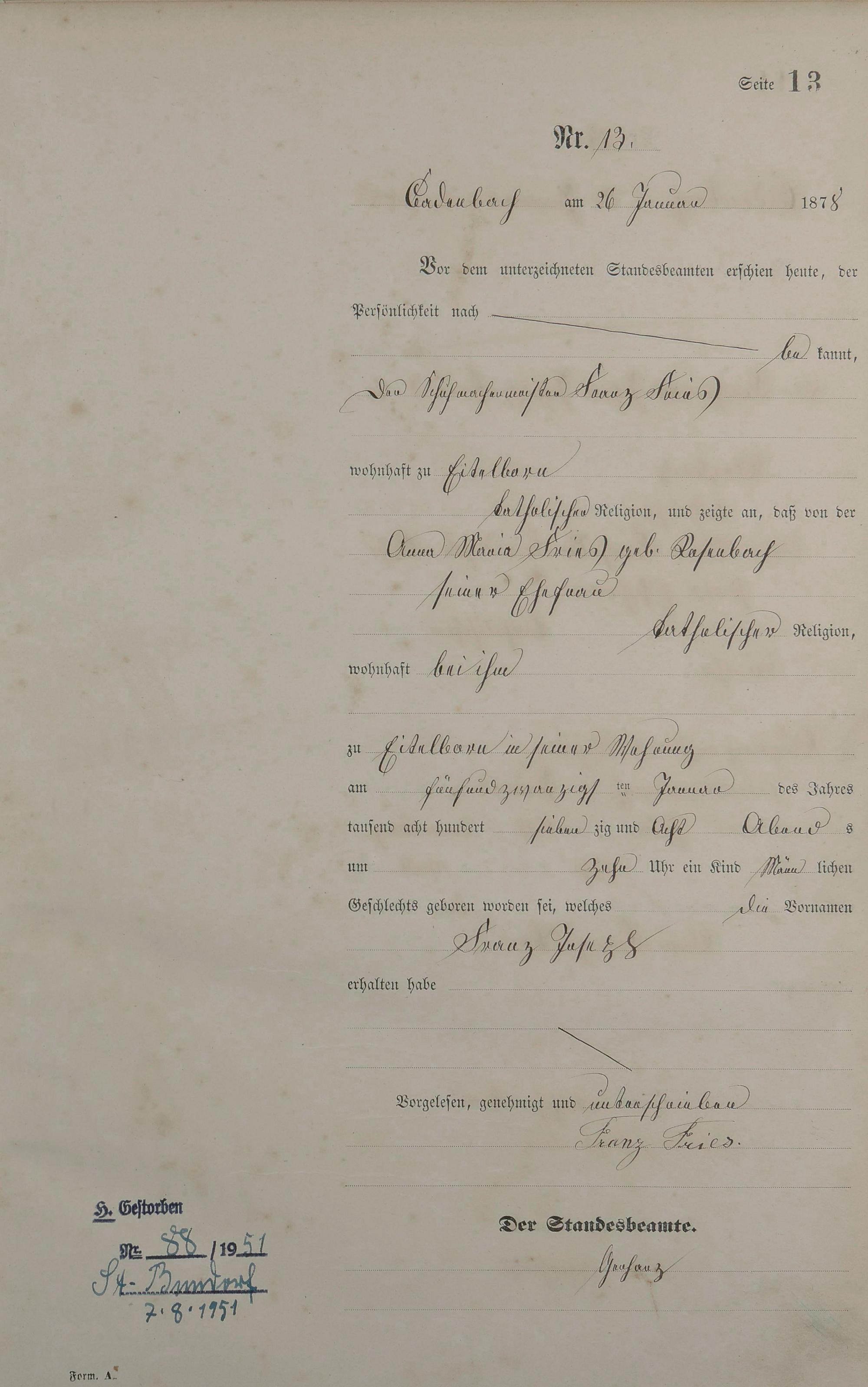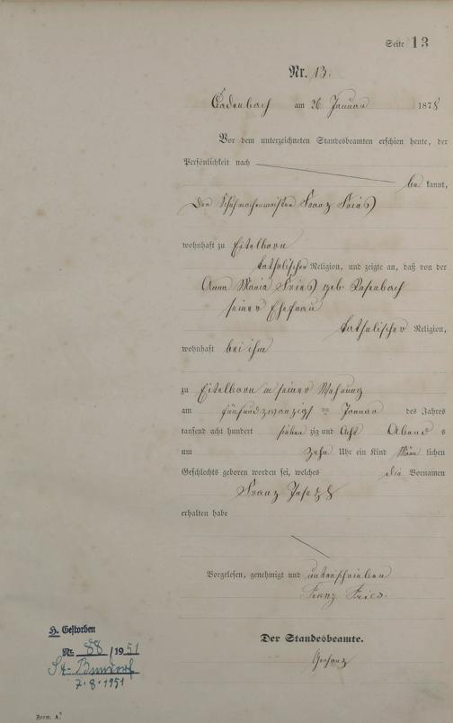 Geburtsregister 1878