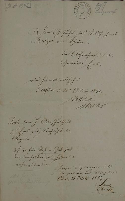 Wilhelm Jacob Balzer aus Scheuern 1845