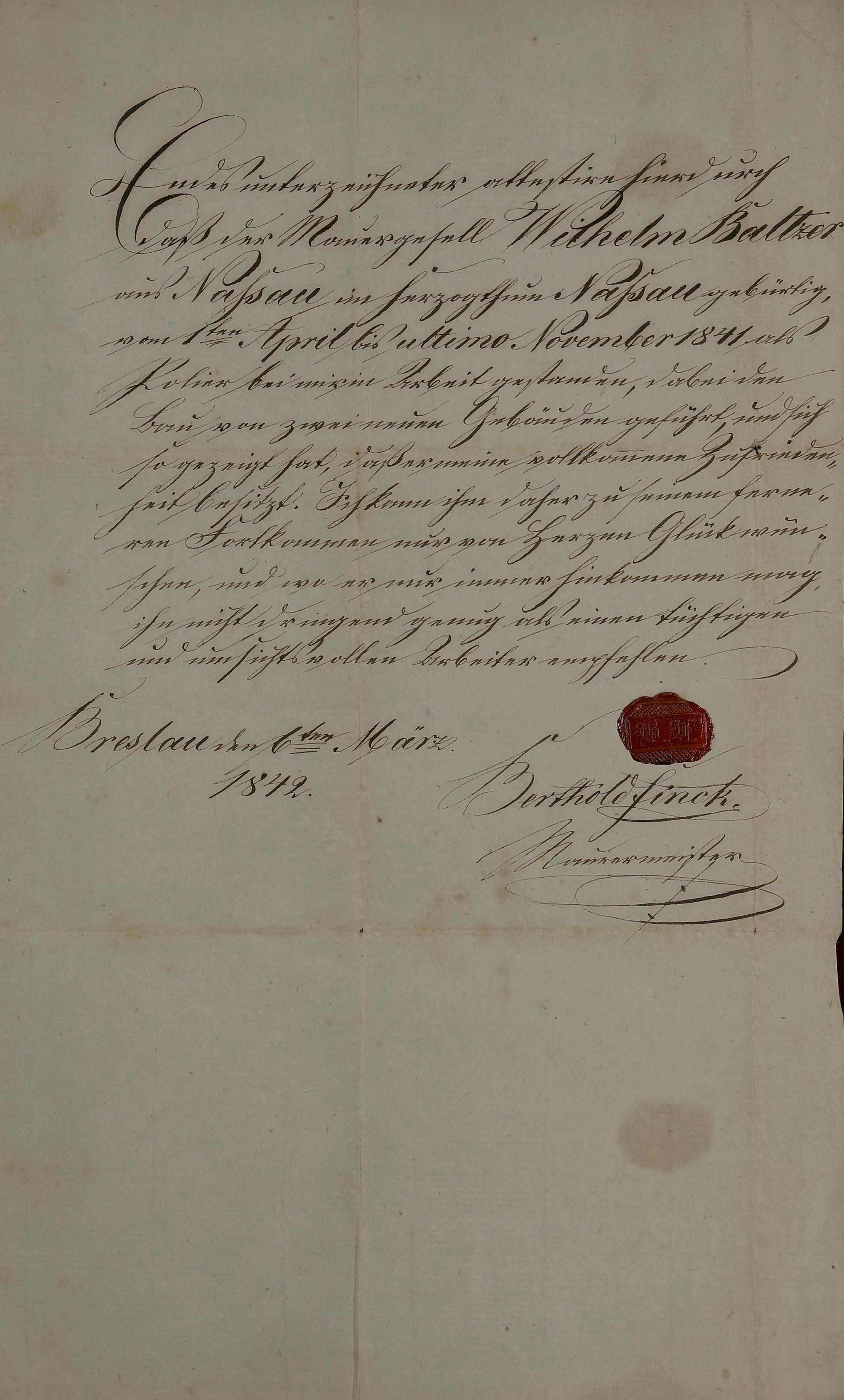 Wilhelm Jacob Balzer aus Scheuern 1845