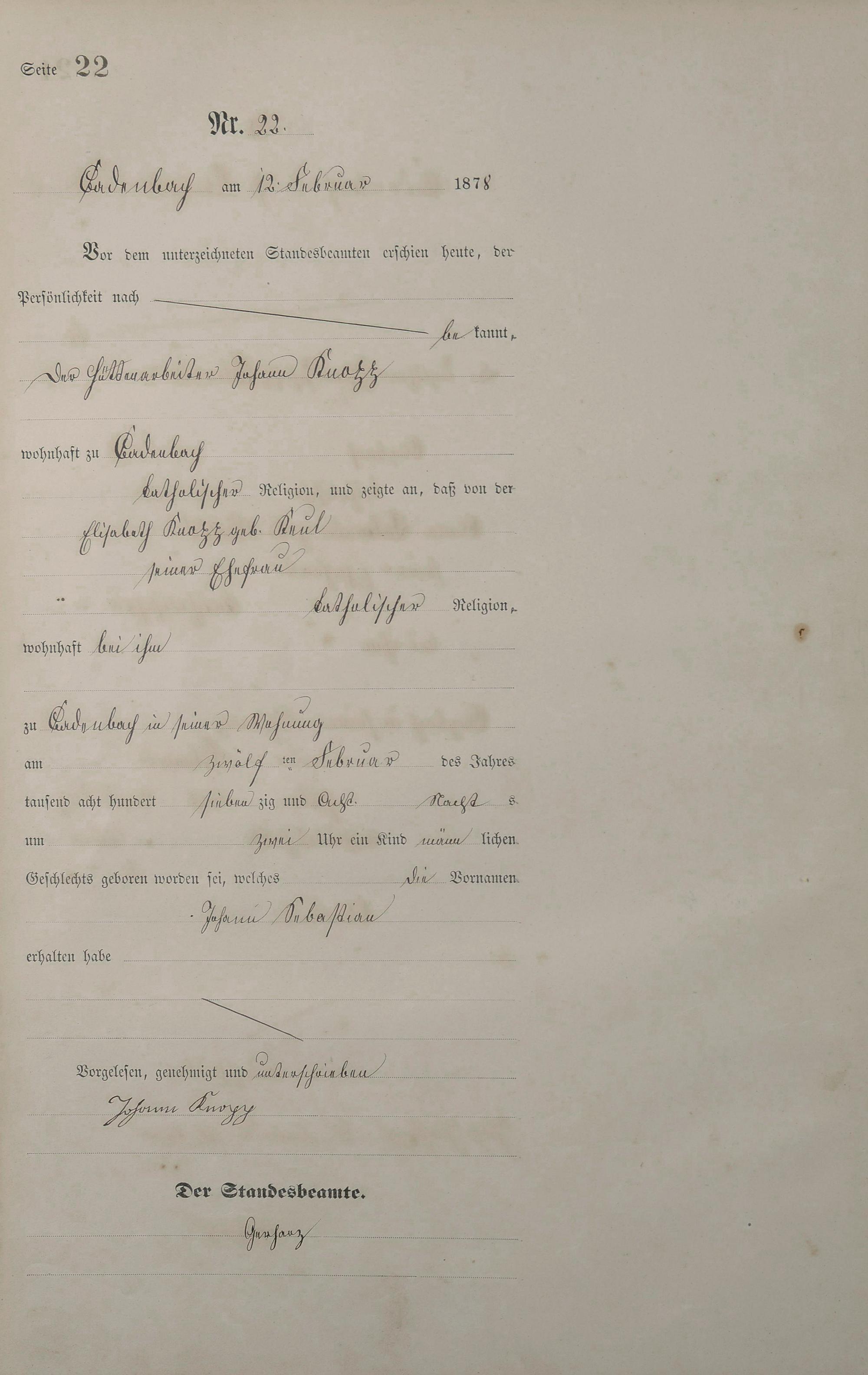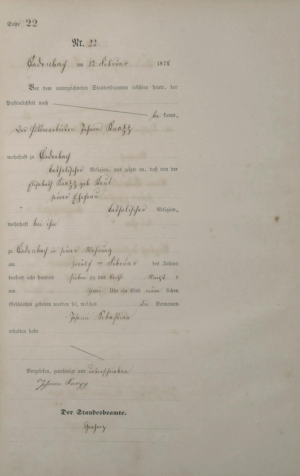 Geburtsregister 1878