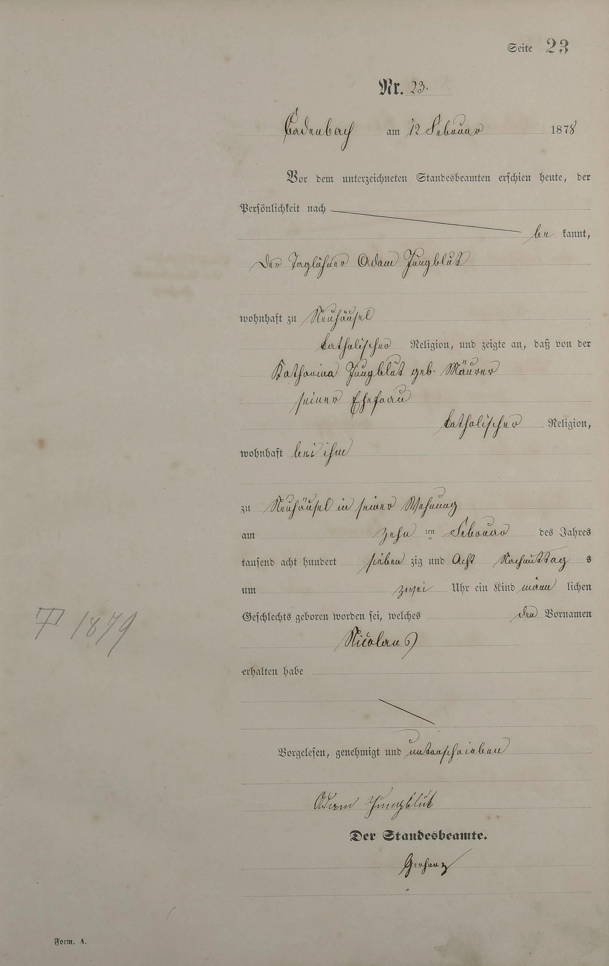 Geburtsregister 1878