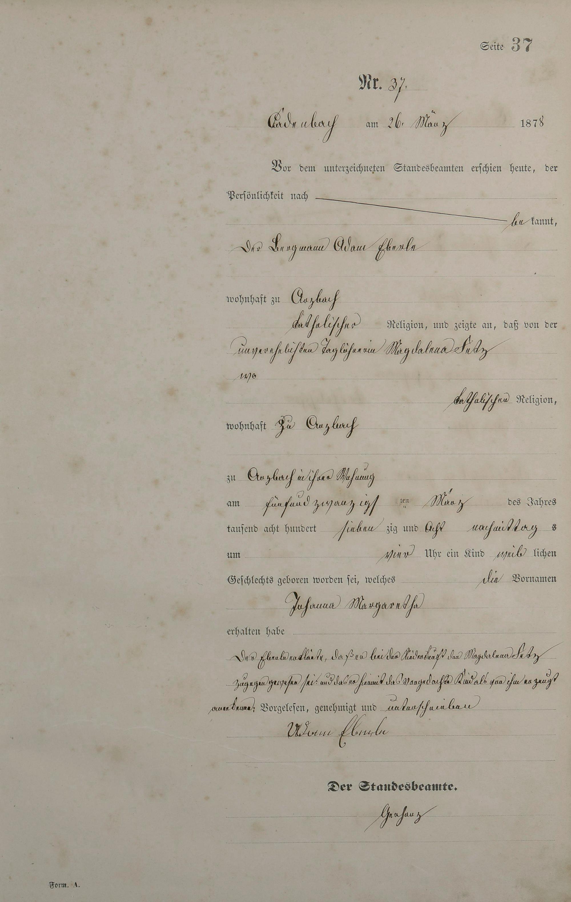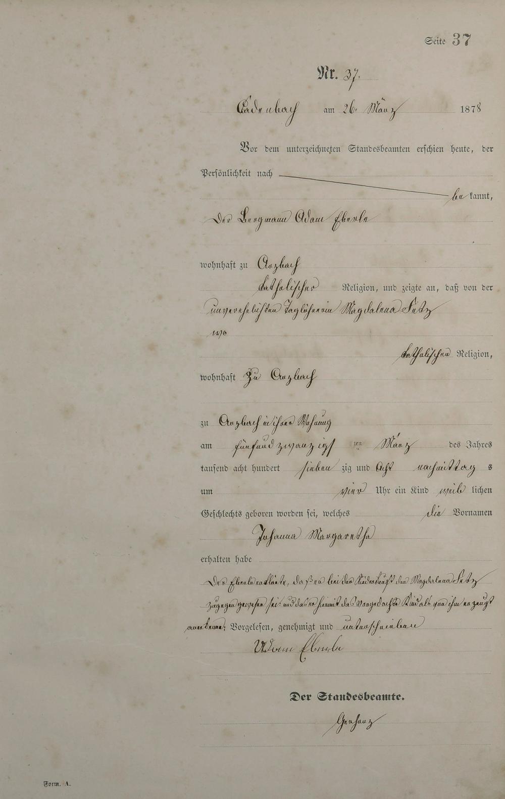 Geburtsregister 1878