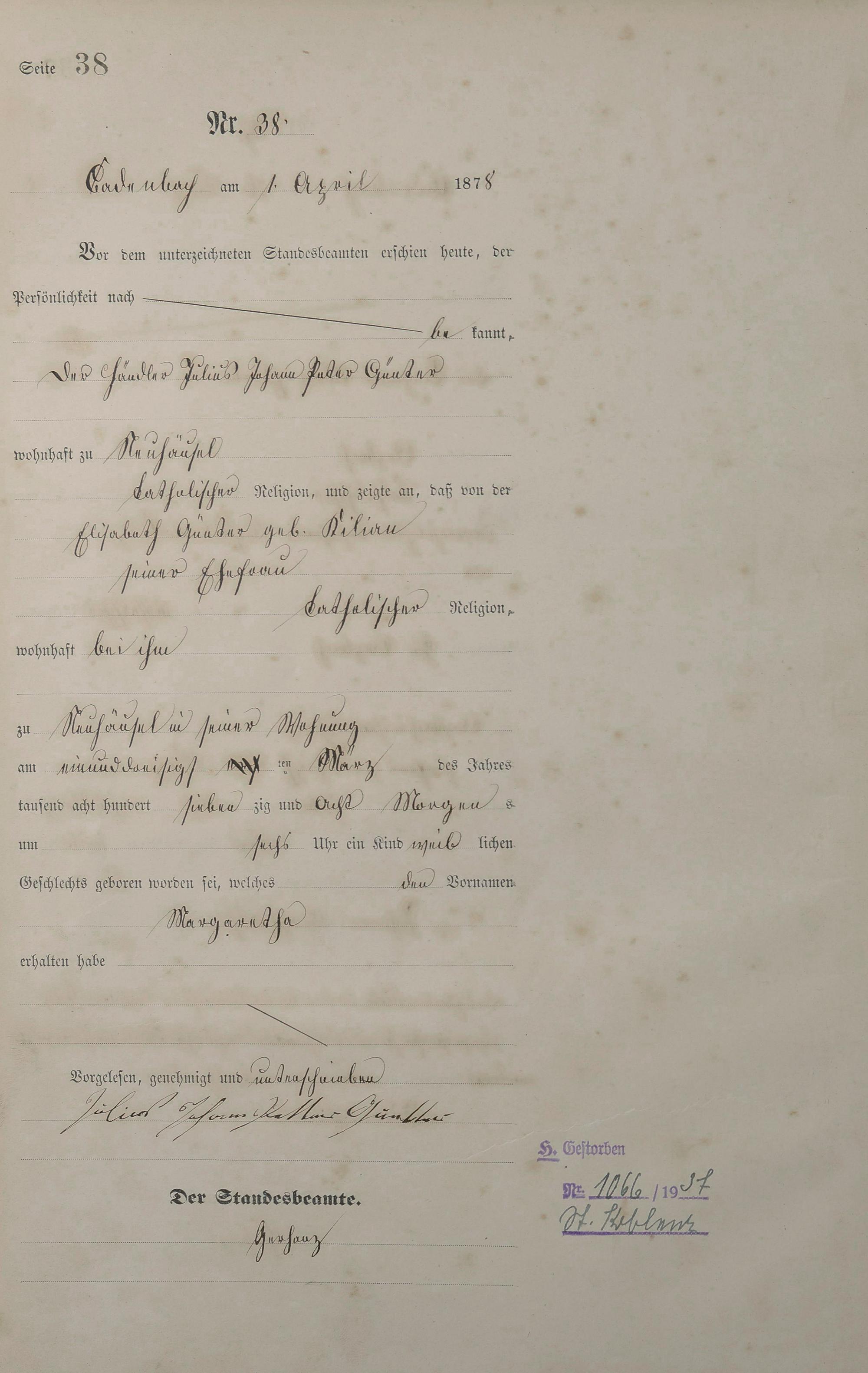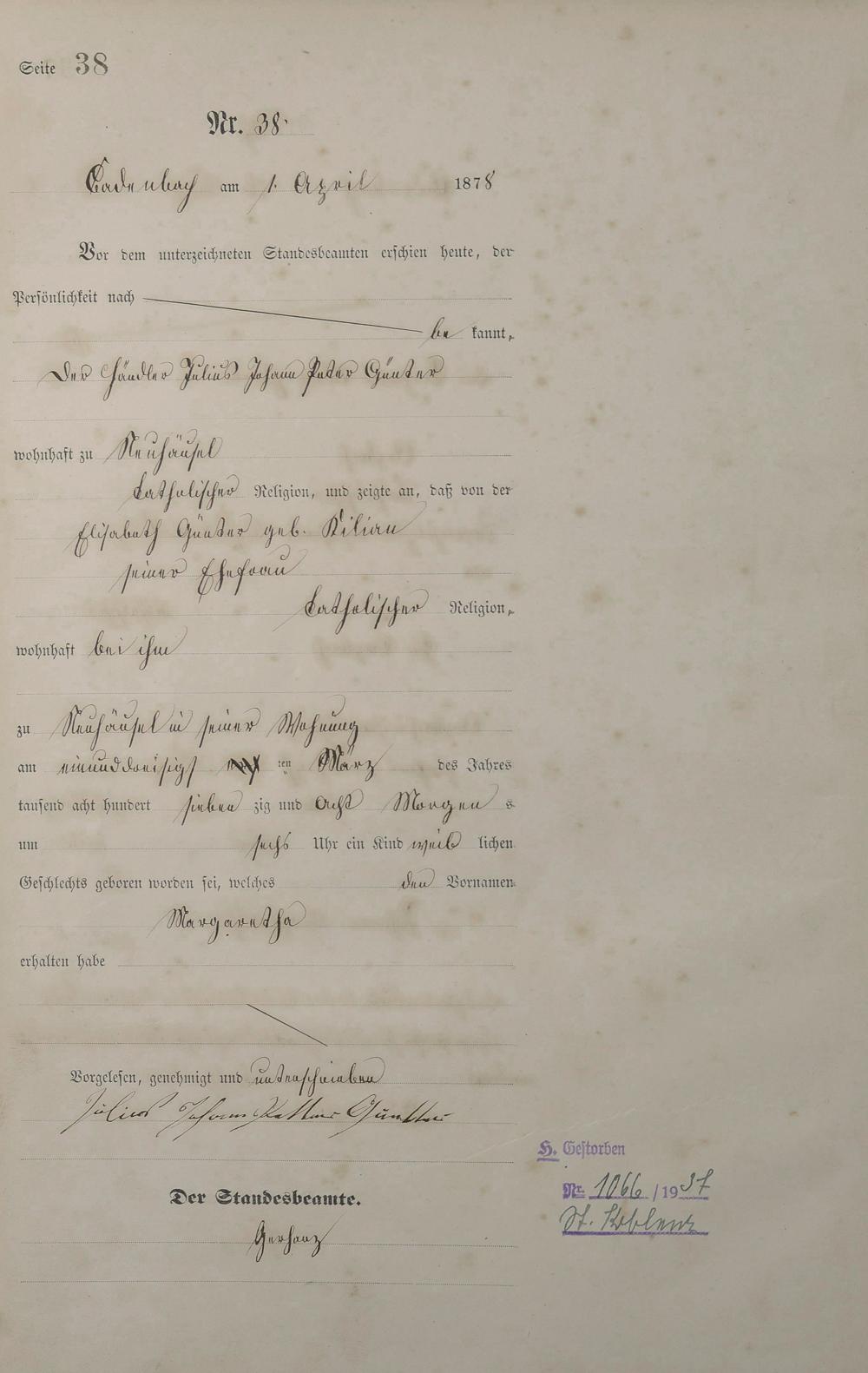 Geburtsregister 1878