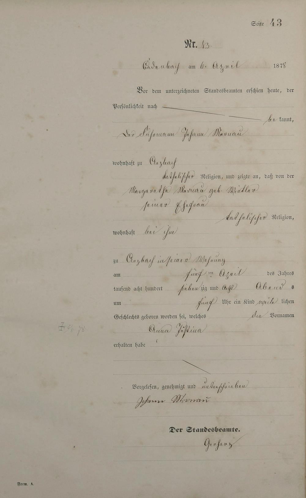 Geburtsregister 1878