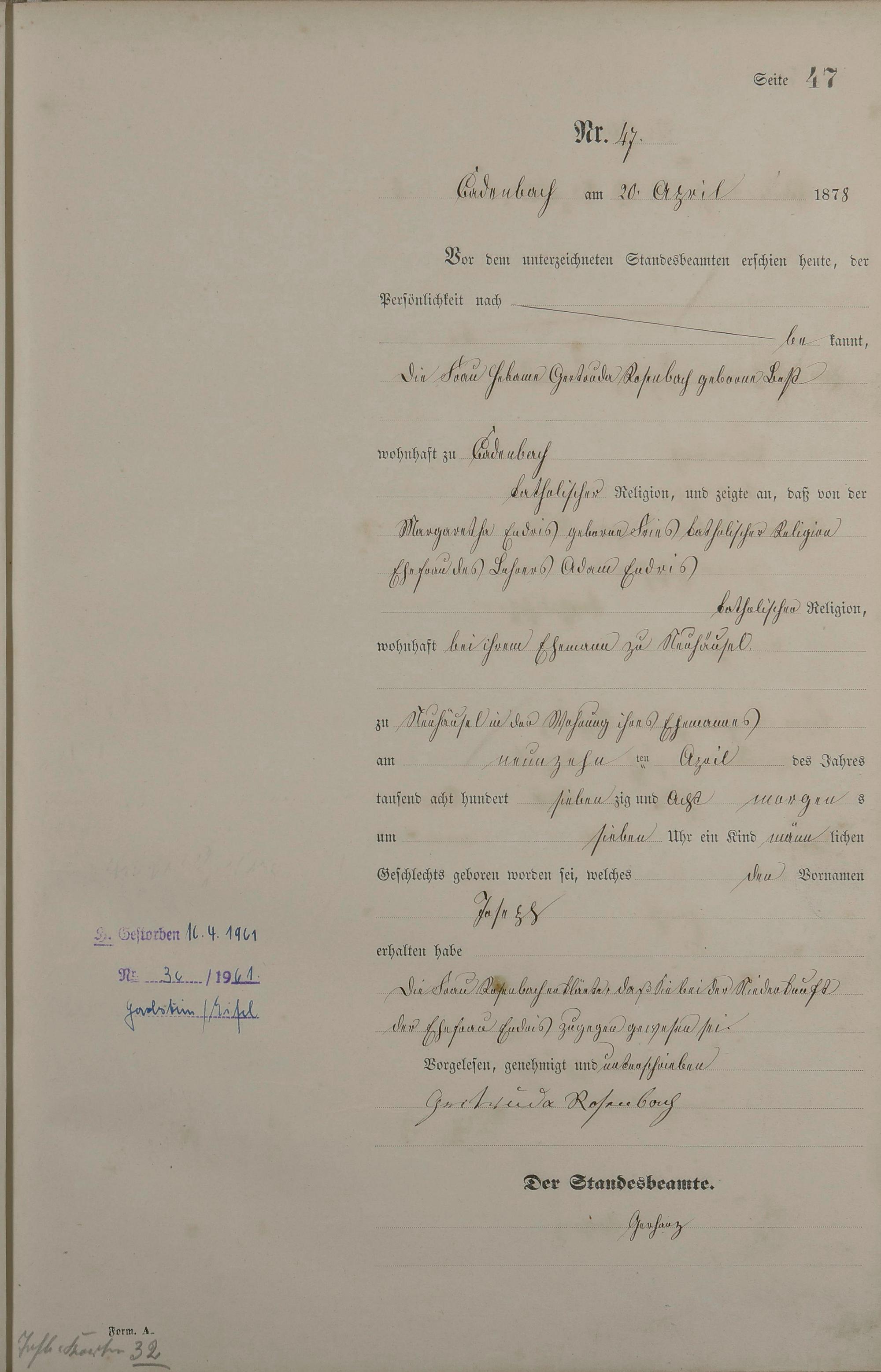 Geburtsregister 1878