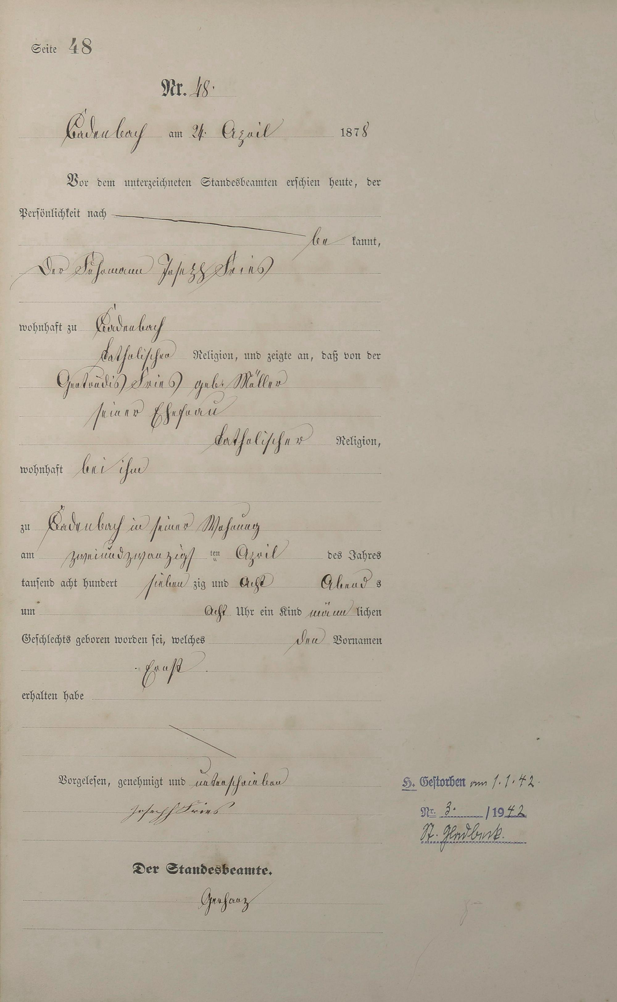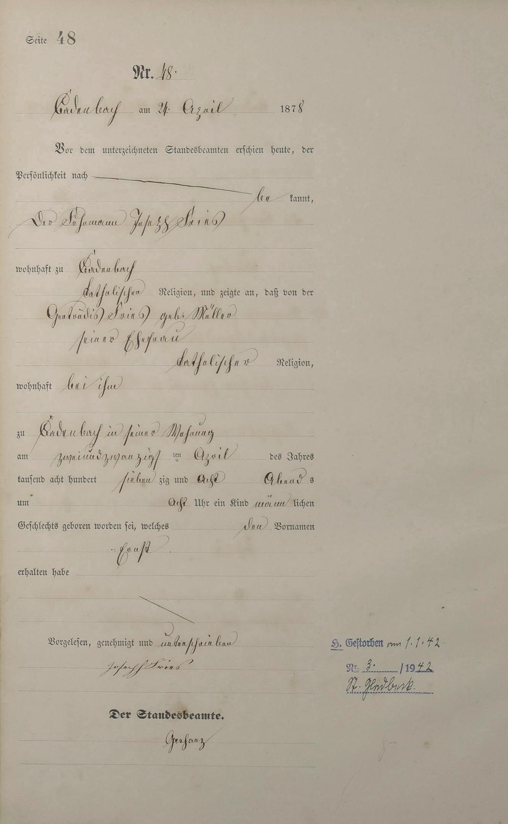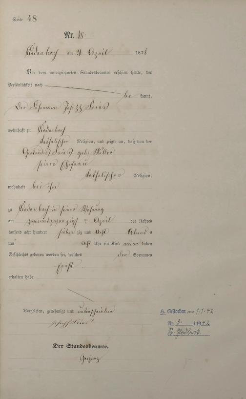 Geburtsregister 1878