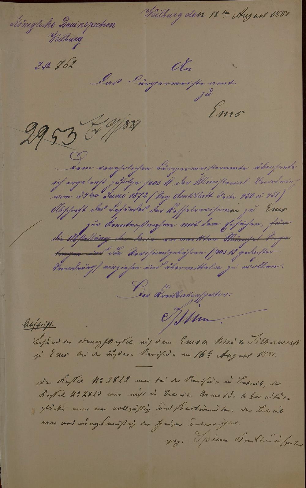 Bauangelegenheiten der Gewerkschaft Remy, Hoffmann & Co. Bendorf/Gesellschaft des Emser Blei- und Silberwerks/AG für Bergbau-, Blei- und Zinkfabrikation zu Stolberg i.W./Gewerkschaft Merkur