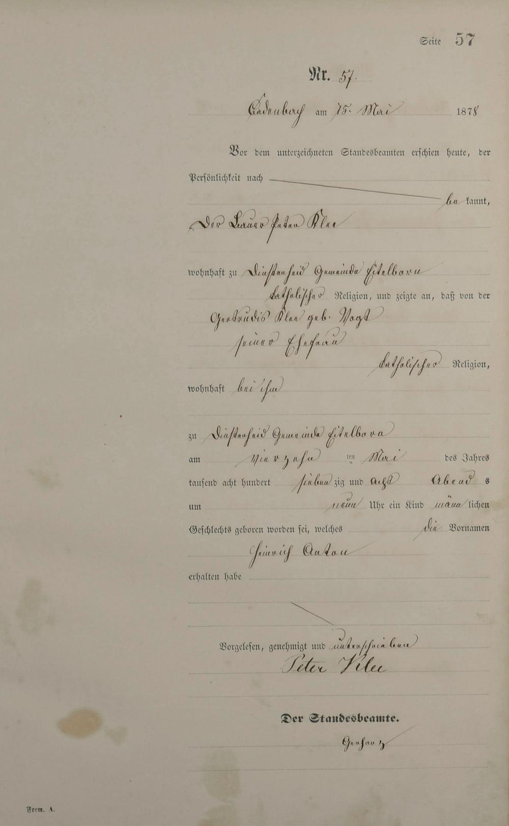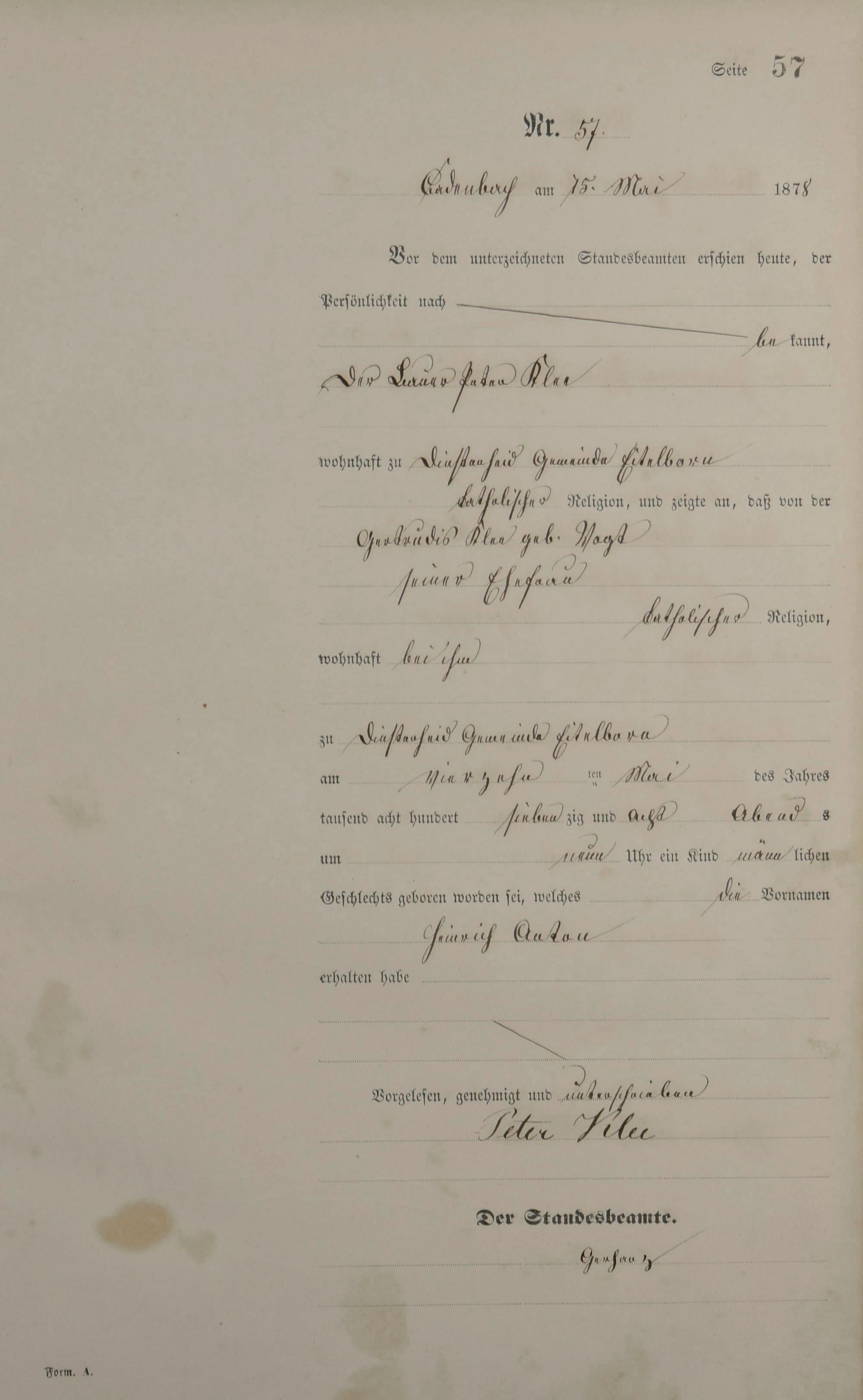 Geburtsregister 1878