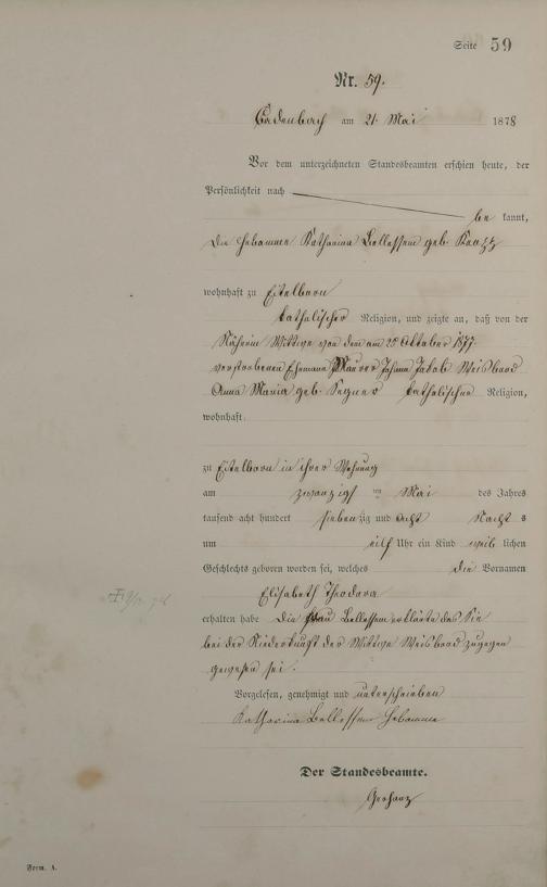 Geburtsregister 1878