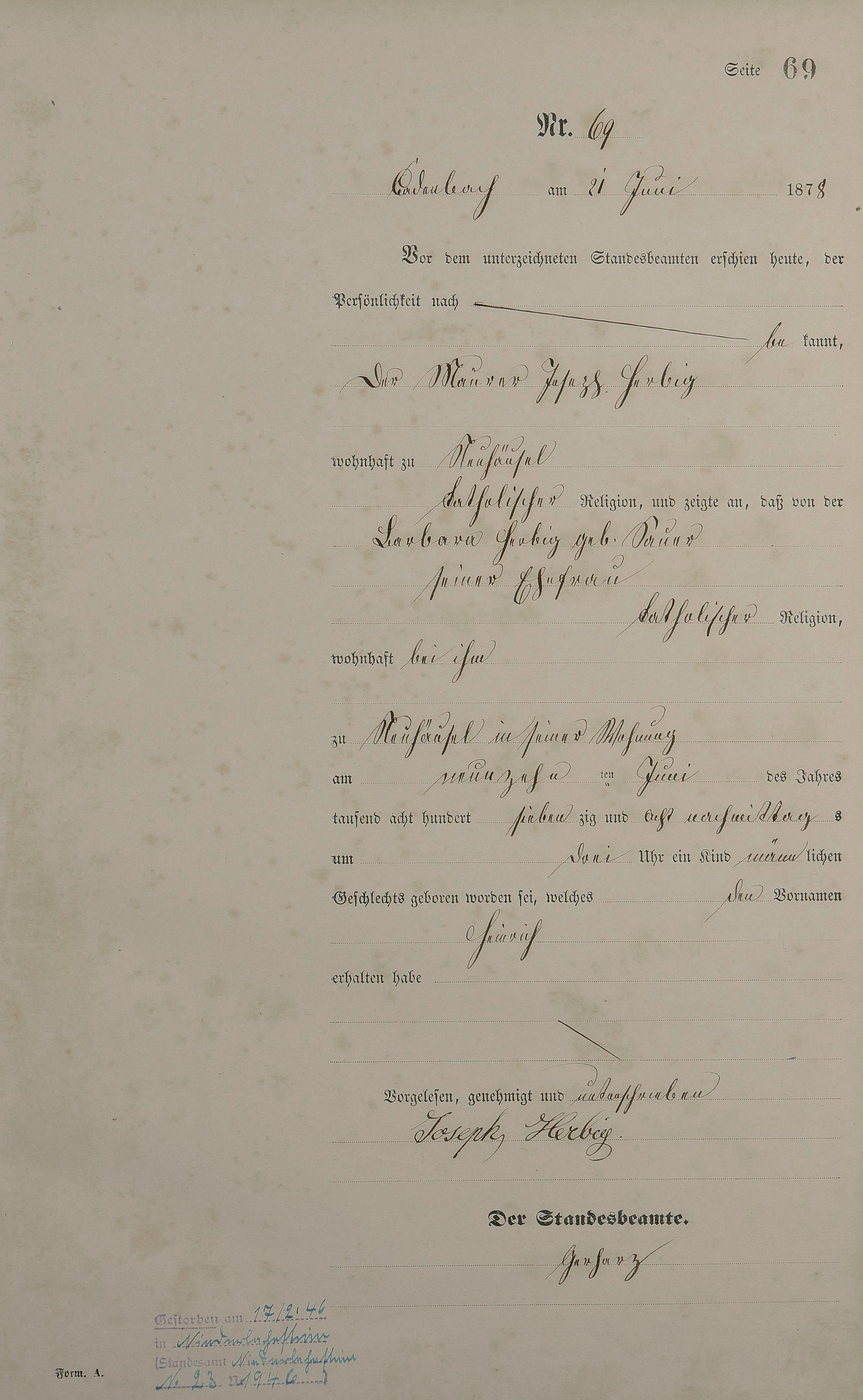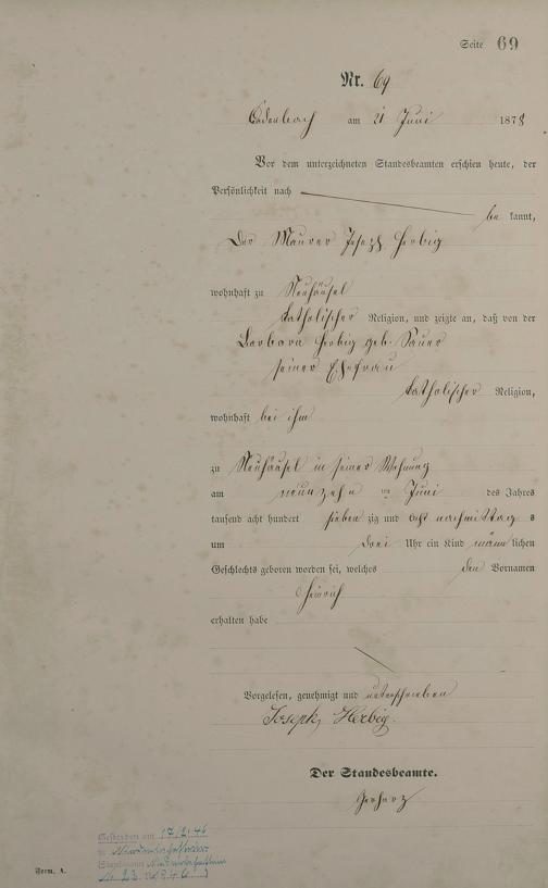 Geburtsregister 1878