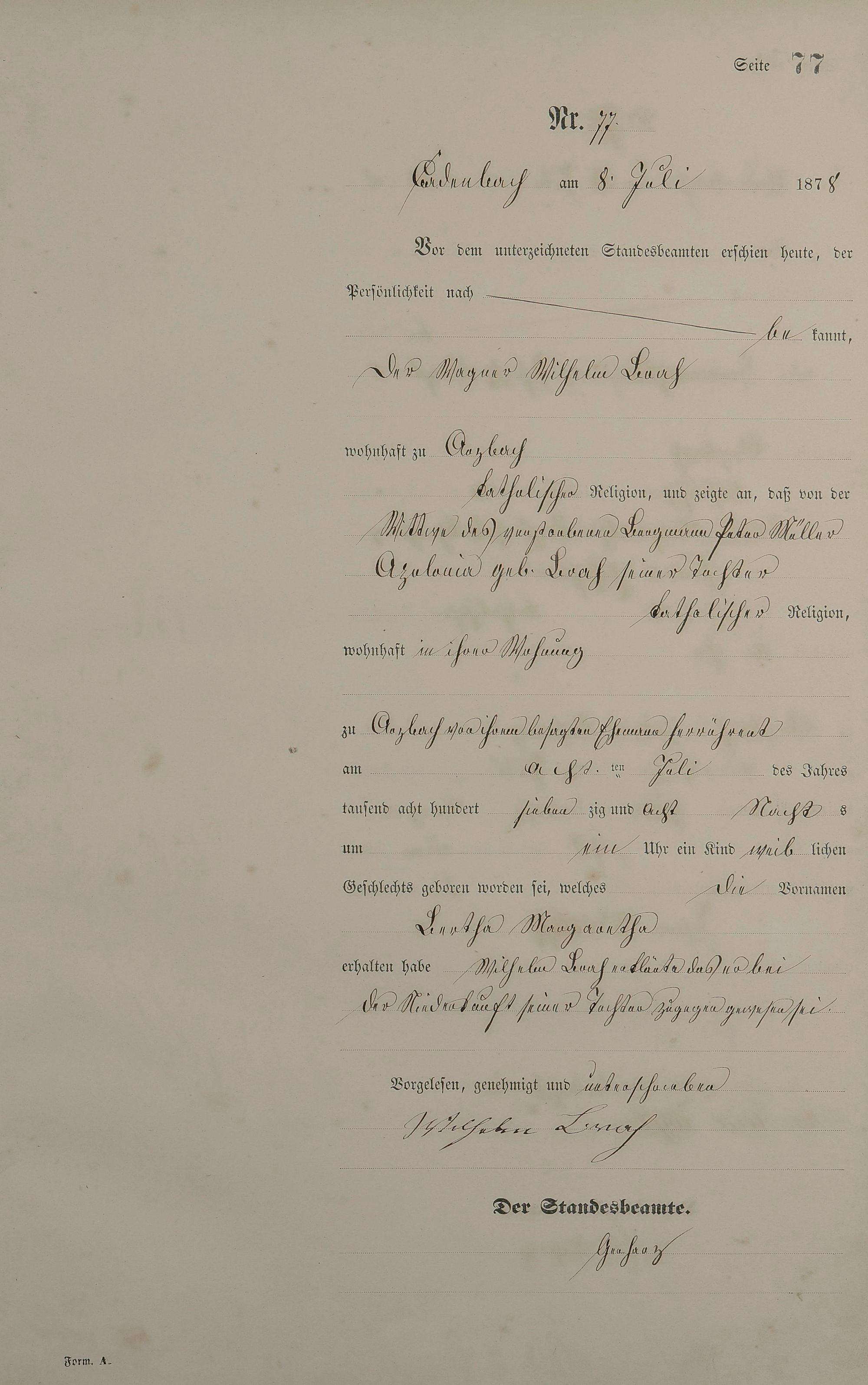 Geburtsregister 1878