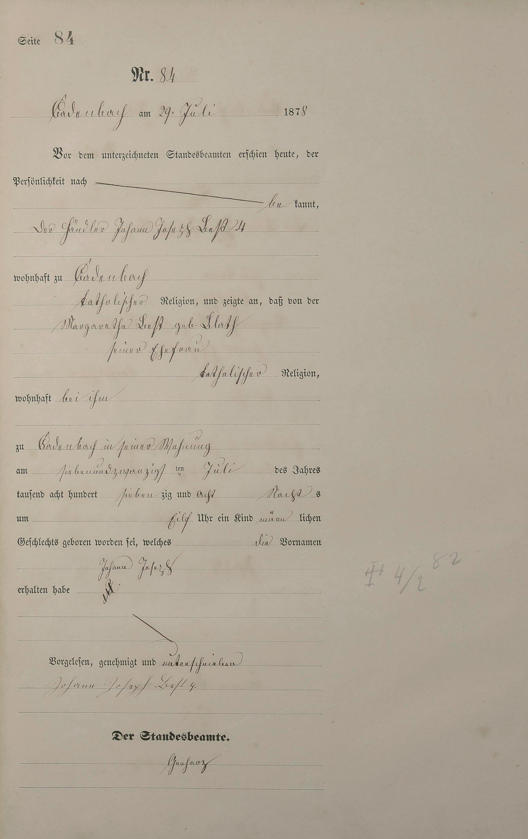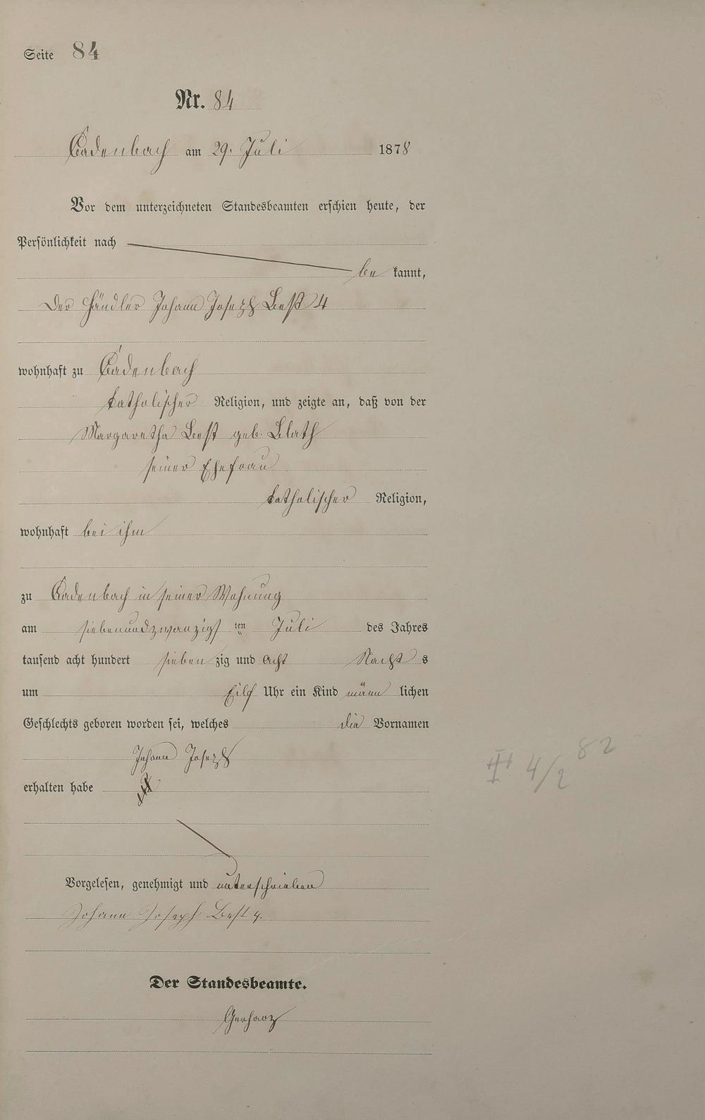 Geburtsregister 1878