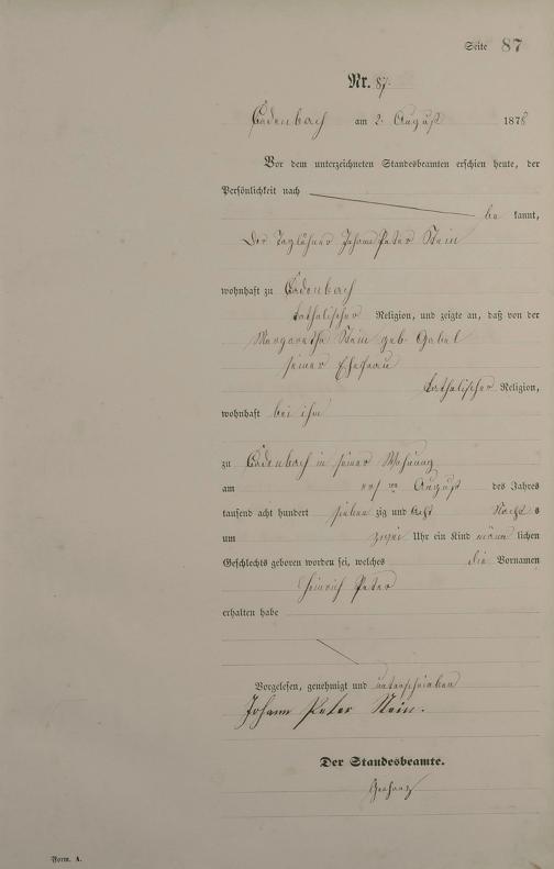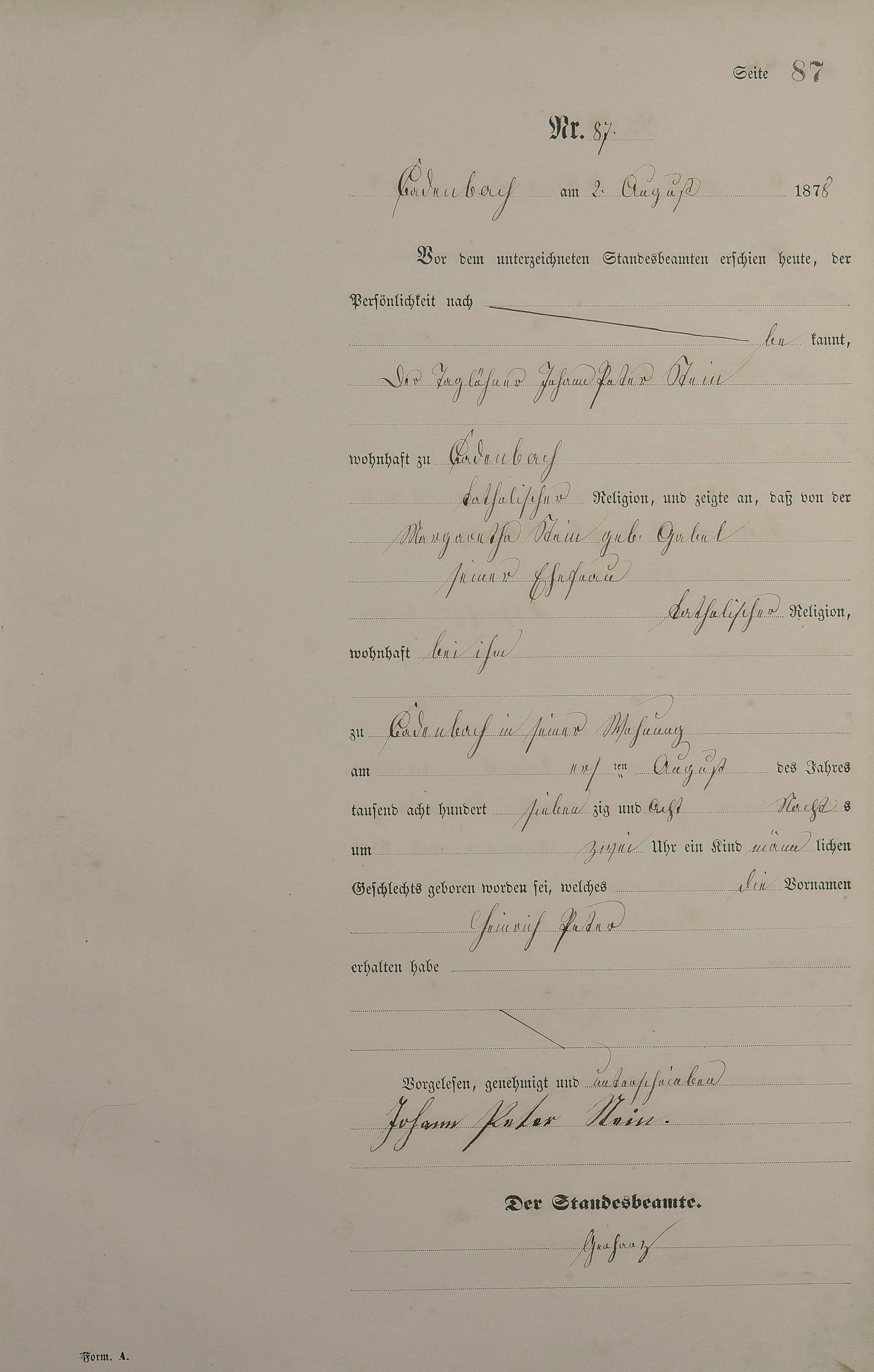 Geburtsregister 1878