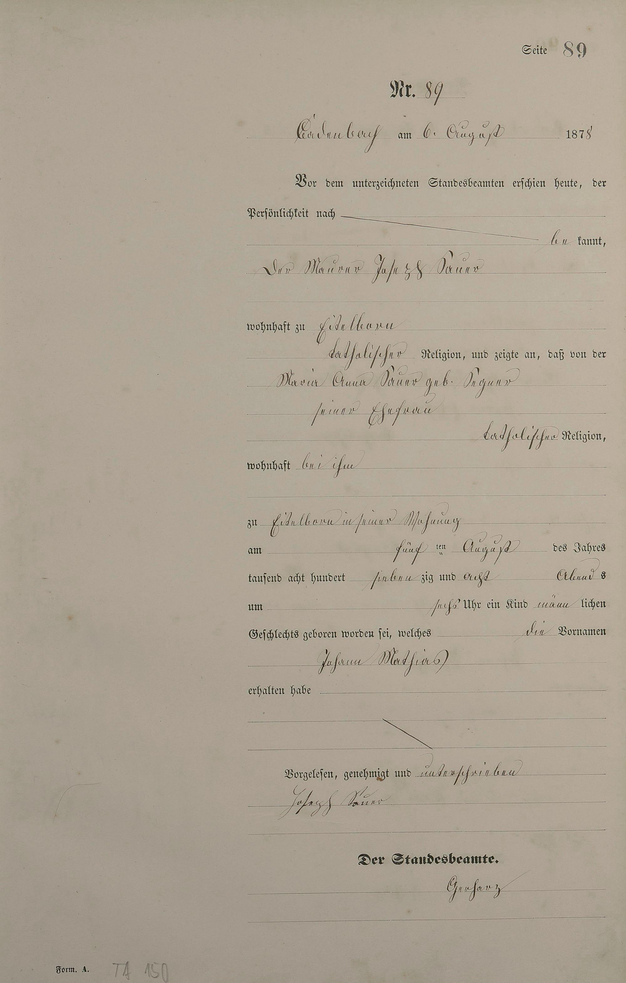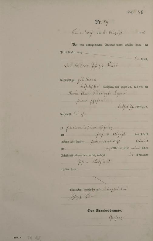Geburtsregister 1878