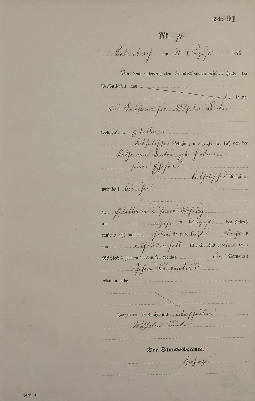 Geburtsregister 1878