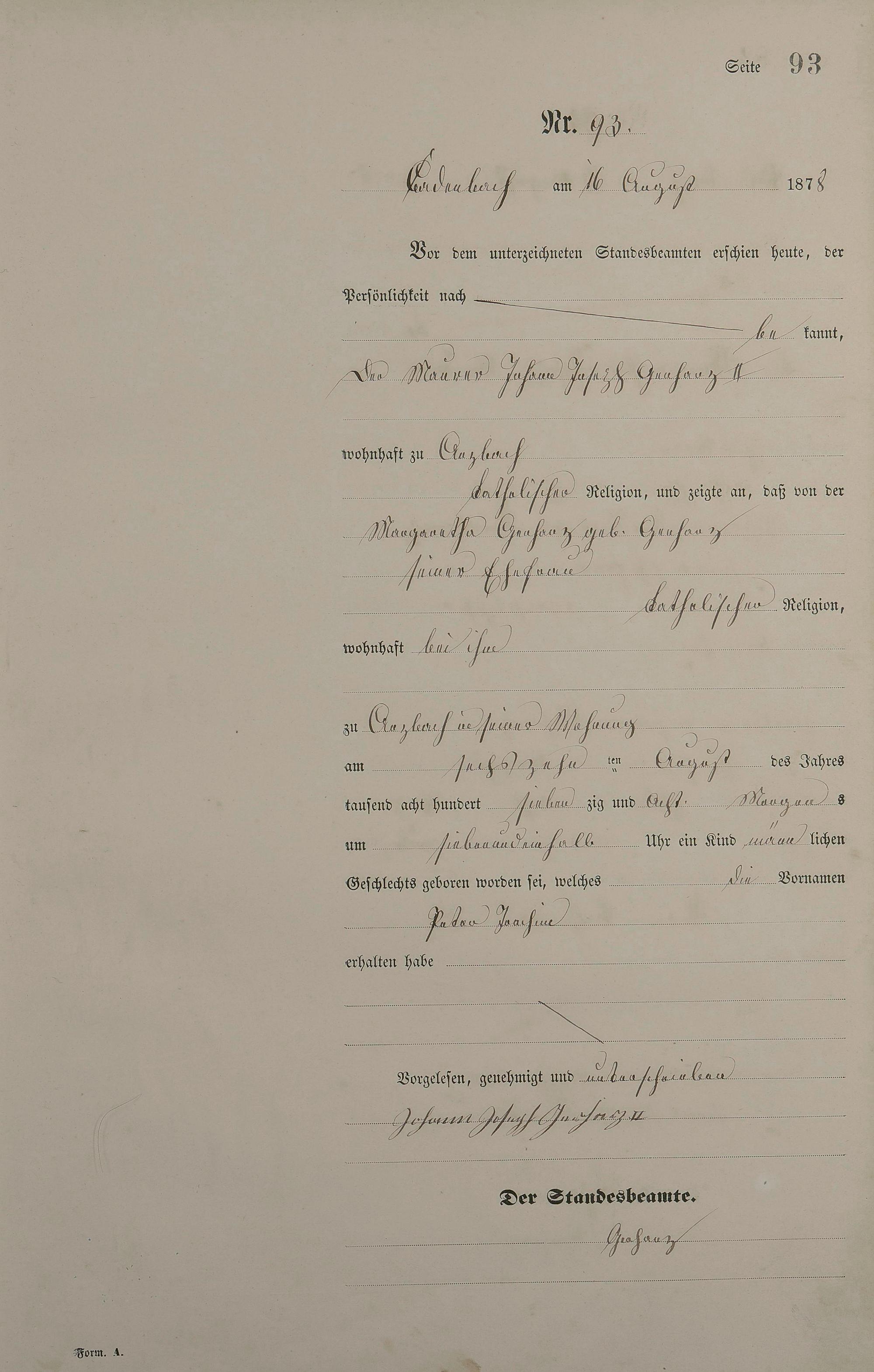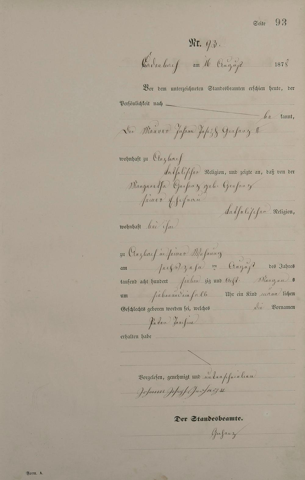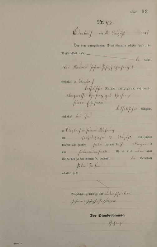Geburtsregister 1878