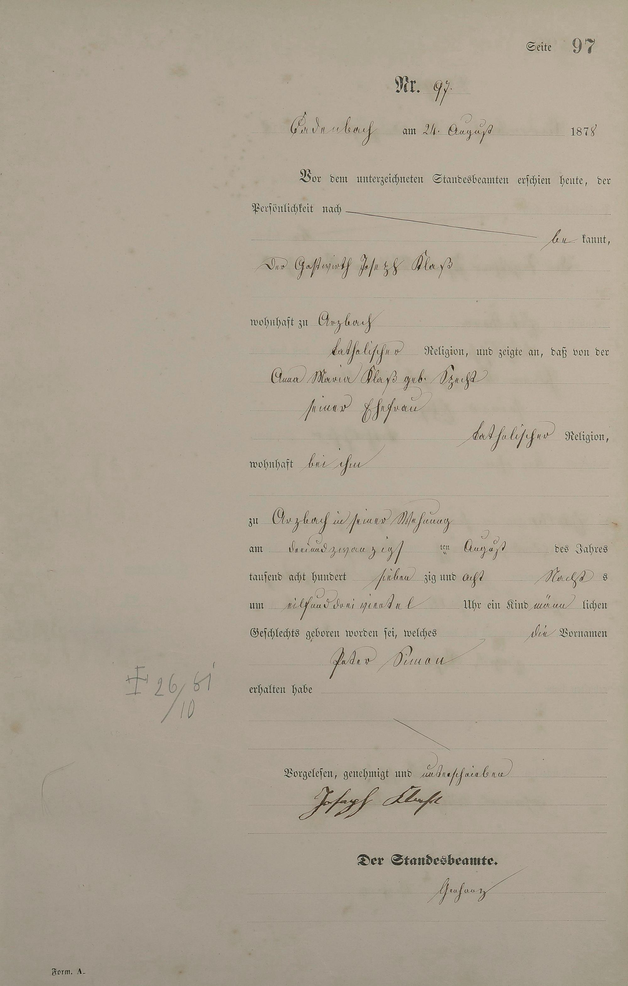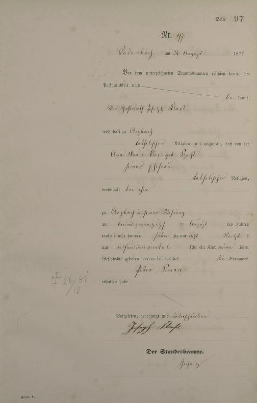 Geburtsregister 1878