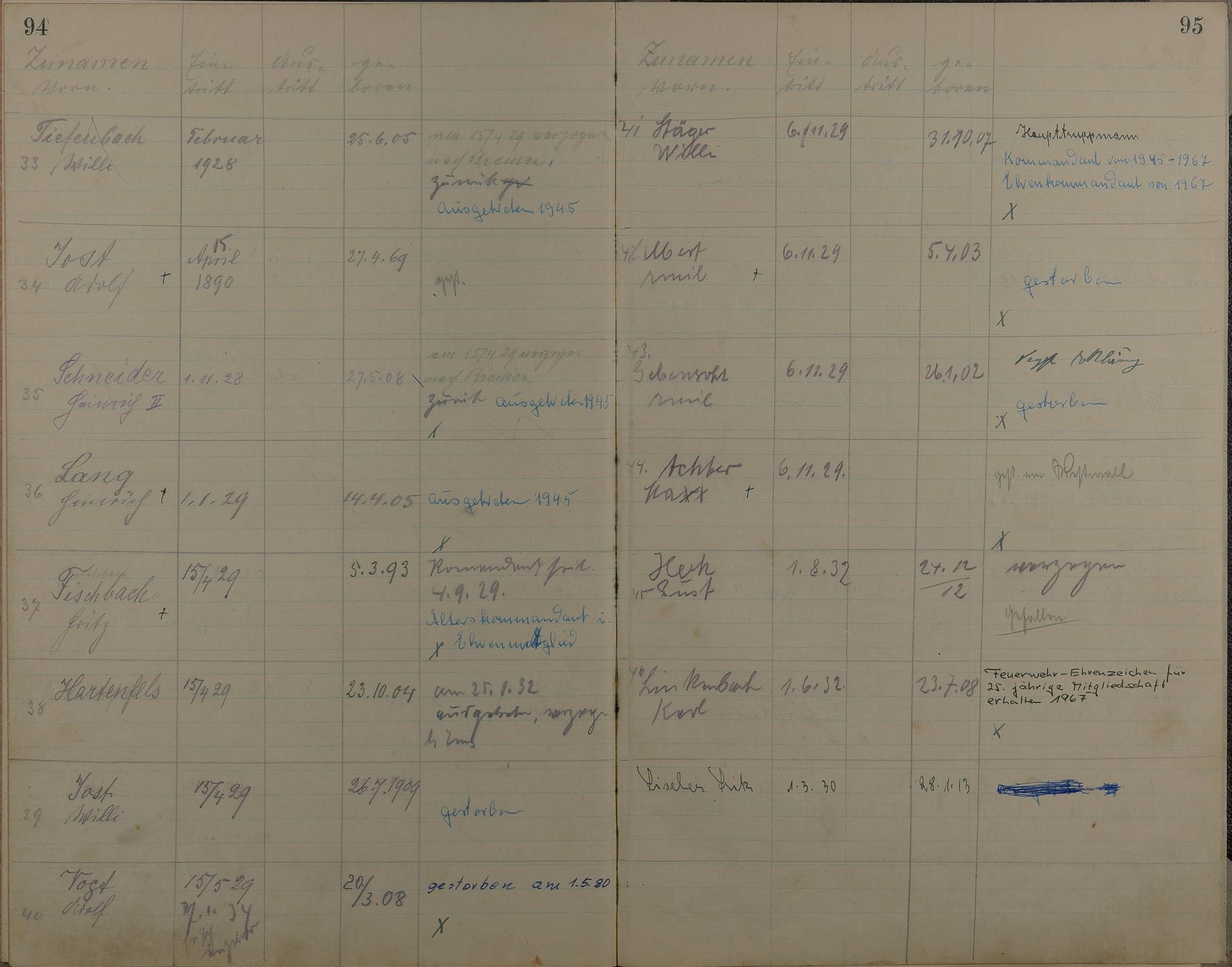 Mitgliederverzeichnis 1879 - 1969