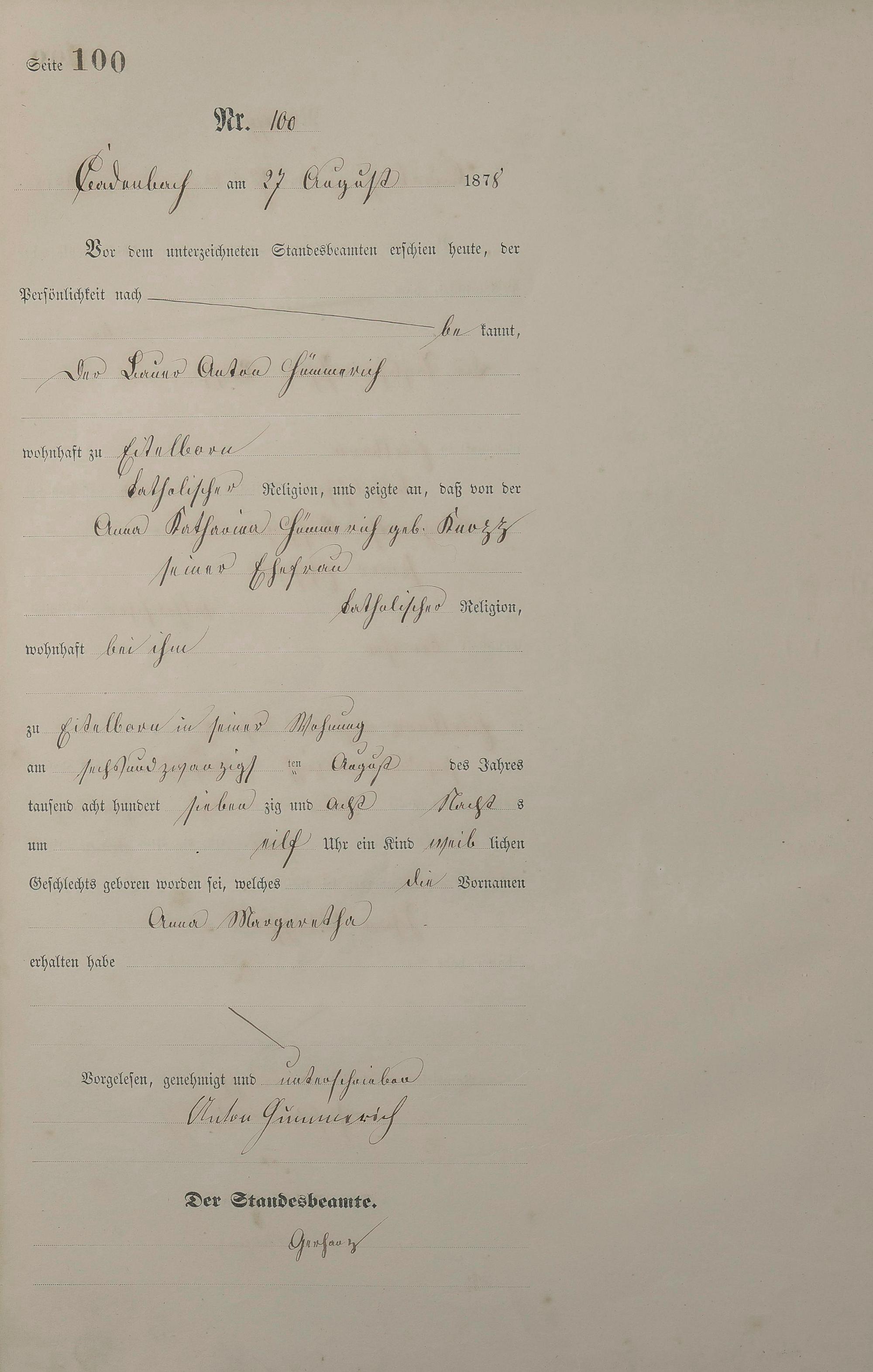 Geburtsregister 1878